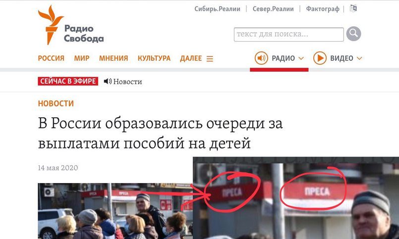 Радио Свобода» сопроводило новость об очередях в России фотографией с Украины