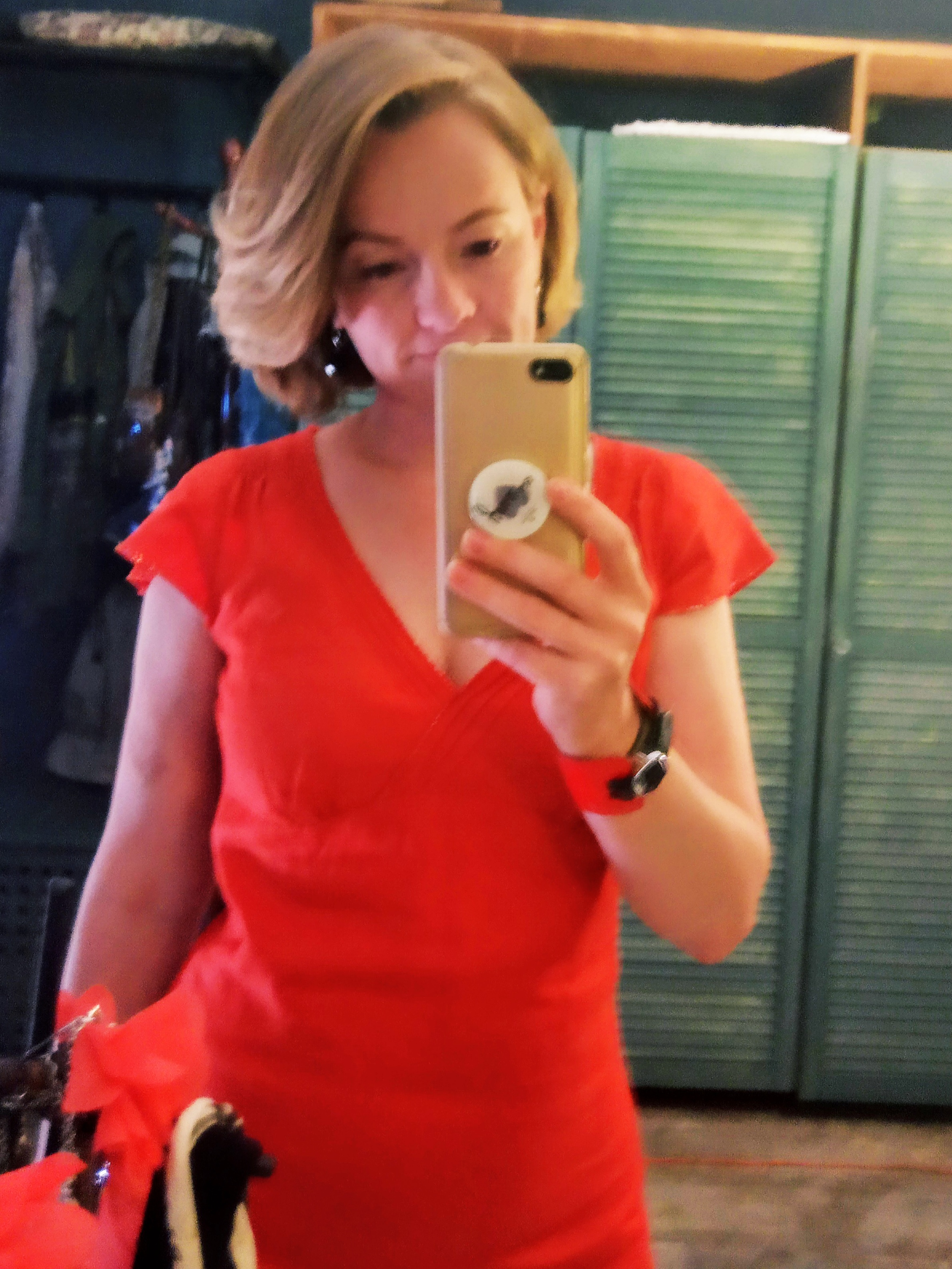 Хотела надеть платье, у него офигенский красный цвет.чистый. и не видно на фото, на подоле, декольте и рукавах такого же цвета красный бисер, переливается очень красиво. Крутилась вертелась, да все мне кажется неудобно, вдруг там вылезет или тут, держать надо осанку и живот Есть очень красивые ретро туфли, с бантом и перемычкой. Но как то уж очень нарядно показалось. Примерила с другой обувью, устала и не пошла в платье Вот этот серый костюмец нормален весьма. И удобен. Хочется принарядиться порой, но мне как то если красиво и "по фигуре" все время неудобно.