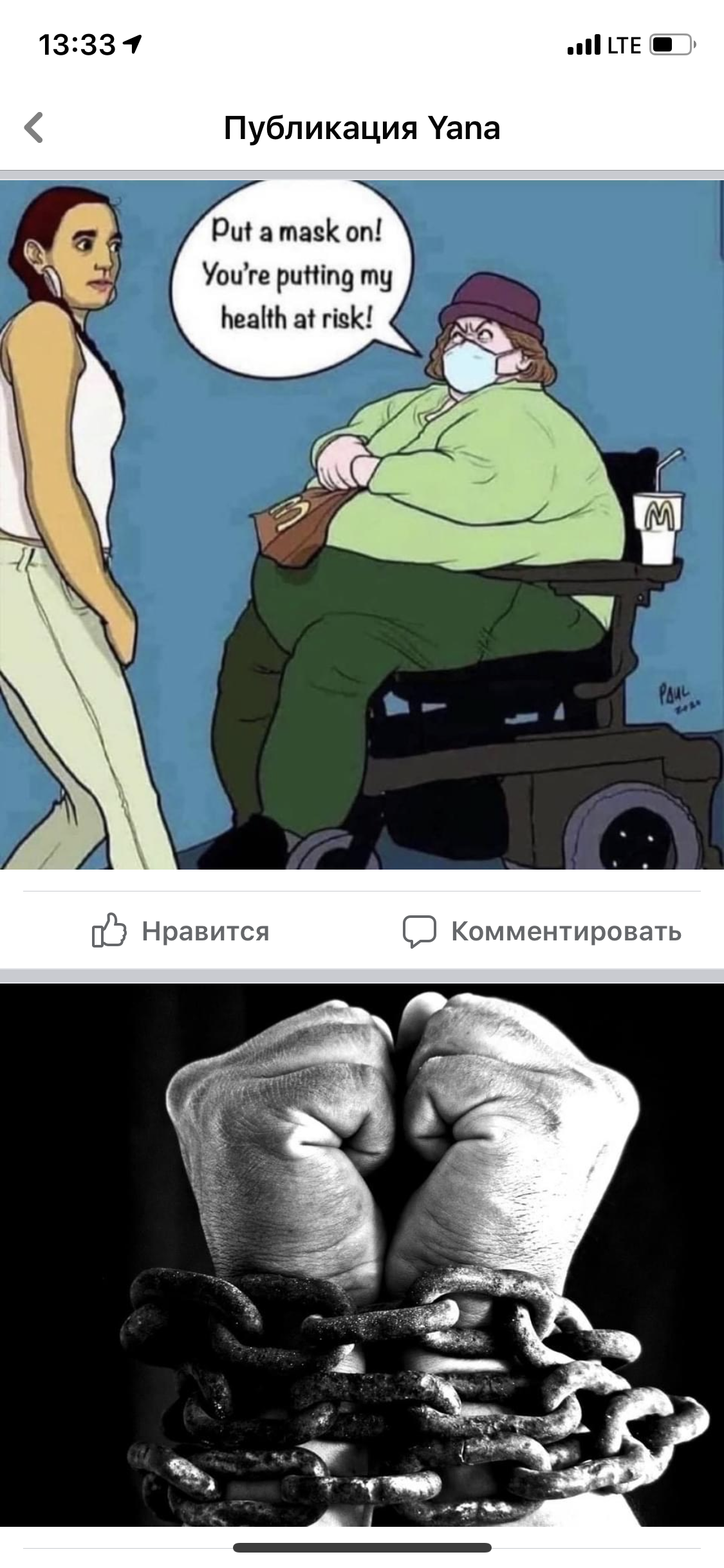 Машencia писал(а): Amalia_Ca писал(а): Lada_T писал(а): Amalia_Ca писал(а): Лада , Покажи мне статьи которые внушают доверие. Сколько дней , часов ты изучала статьи посвящённые безопасности масок ? Ни- сколько . Ты слушаешь говорящую голову в зомбоящике . Молодец  Откуда ты знаешь что и сколько и что я читала? Не одна ты тут сидишь и ресерчи делаешь Про зомбояшик такое и про тебя можно сказать Его не смотрю я читаю изучаю и анализирую critical thinking называется Так что твой муж думает про все это ? Почему ты постоянно спрашиваешь про мужа? Или ты думаешь что я самостоятельно без него думать и читать не могу ??? Мне его апрувал постоянно нужен Да вижу я что ты читала - это же красной строкой . Я ношу маски что бы защитить маму . Большей глупости я не читала за последние 5 мес . Тогда почему врачи болеют короной , несмотря на маски . Потому что осматривают трогают разговаривают ежедневно! С этими больными. Такая работа, без этого никак. У них самые большие exposures На тогда вот и ответ ваш вопрос . Можно ли ЛЕГКО заразиться короной если ты не врач!!!???? Нет !!! И мой пост вчера показывает это на странице 6. И тут же выяснилось никакая экипировка не спасла врачей от заражения . Где логика . Ну и зачем маски ? Кто заразил Трампа ?? Она ведь носила маску . Маска спасла ??? Почему маска не спасла ?