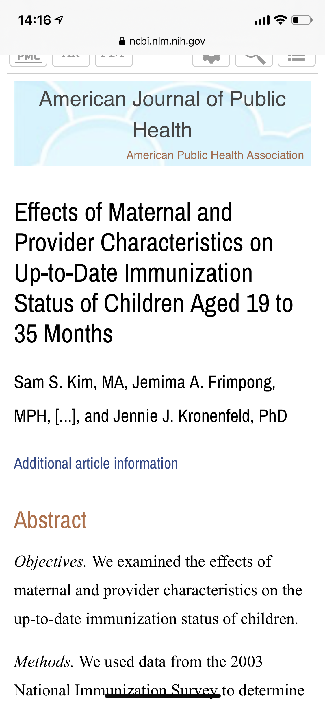 Linda Subtle писал(а): Lada_T писал(а): Iamthecat писал(а): Я к тому говорю, что сейчас очень развивается антипрививочное движение. Вот и Амалия сказала, что своему ребёнку никаких прививок делать не будет. У нее вроде муж лоер. Калифорнийский с не лоер реднек из мисисипи .. по идее умный , образованный человек У него интересно какие взгляды на это все ? И на ее безалаберность с ковидом с прививками... Я не знаю .. но все образованные professionals :attorneys инженеры доктора в моем окружении имеют другой аттитюд совершено ... А амалин муж вот так просто поехал в Россию все нормально супер успешный лоер ... Амалька ему левый фотошоп показывает... Цитата: Лоер не лоер на эту тему тоже есть исследования . Количество отказавшихся от прививок не по медицинским показаниям в Калифорнии выросло в 4 раза между 2001 и 2014 годами. В частных школах было в 2 раза больше отказников, чем в государственных. Процент отказников был выше среди белых, более богатых и более образованных {6}До закона об обязательной вакцинации в 2015 . . Медицинские работники в 4 раза чаще отказываются от прививок. Статья ; Children Who Have Received No Vaccines: Who Are They and Where Do They Live? Philip J. Smith, Susan Y. Chu and Lawrence E. Barker Pediatrics July 2004, 114 (1) 187-195; DOI: https://doi.org/10.1542/peds.114.1.187 ArticleFigures & DataInfo & MetricsComments This article requires a subscription to view the full text. If you have a subscription you may use the login form below to view the article. Access to this article can also be purchased. Download PDF Abstract Context. Each year 2.1 million children 19 to 35 months of age are undervaccinated. Among these are children who have received no vaccinations. Unvaccinated children are at increased risk of acquiring and transmitting vaccine-preventable diseases. Objectives. To assess whether the characteristics of children with no vaccinations differ from those of undervaccinated children, to monitor trends in the numbers of unvaccinated children, and to identify states with high rates and counties with large numbers of unvaccinated children. Design. A nationally representative probability sample of children 19 to 35 months of age was collected annually between 1995 and 2001. Vaccination histories were ascertained from children's medical providers. Undervaccinated children had received ≥1 dose of diphtheria-tetanus-pertussis, polio, measles, Haemophilus influenzae type b, hepatitis B, or varicella vaccine but were not fully vaccinated. Unvaccinated children were children who were reported as having no medical providers and having received no vaccinations or children whose medical providers reported administering no vaccinations. Participants. A total of 151 720 children sampled between 1995 and 2001, 795 of whom were unvaccinated. Results. Undervaccinated children tended to be black, to have a younger mother who was not married and did not have a college degree, to live in a household near the poverty level, and to live in a central city. Unvaccinated children tended to be white, to have a mother who was married and had a college degree, to live in a household with an annual income exceeding $75 000, and to have parents who expressed concerns regarding the safety of vaccines and indicated that medical doctors have little influence over vaccination decisions for their children. Unvaccinated children were more likely to be male than female. Annually, ∼17 000 children were unvaccinated. The largest numbers of unvaccinated children lived in counties in California, Illinois, New York, Washington, Pennsylvania, Texas, Oklahoma, Colorado, Utah, and Michigan. States that allowed philosophical exemptions to laws mandating vaccinations for children as they entered school had significantly higher estimated rates of unvaccinated children. Conclusions. Unvaccinated children have characteristics that are distinctly different from those of undervaccinated children. Unvaccinated children are clustered geographically, increasing the risk of transmitting vaccine-preventable diseases to both unvaccinated and undervaccinated children. Ссылка на статью https://pediatrics.aappublications.org/content/114/1/187