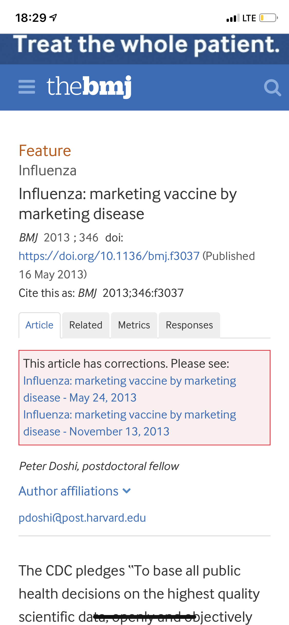 Продвижение вакцин против гриппа является сегодня одной из наиболее агрессивных стратегий общественного здравоохранения. 20 лет назад, в 1990-м, рынок вакцин от гриппа в США составлял 32 миллиона доз, а сегодня он составляет 135 миллионов доз. Этот огромный рост был вызван не спросом, а рекламной кампанией, которая талдычит нам, что грипп это серьезная болезнь, что мы все подвержены риску осложнений, что прививка практически безопасна, а вакцинация спасает жизни. С этой точки зрения, похоже, что отсутствие вакцин для всех 315 миллионов граждан США - граничит с неэтичным. Тем не менее, людей по всей стране заставляют прививаться от гриппа, особенно в медицинских учреждениях, именно потому, что не все этого желают, и принуждение является единственным способом достижения высокого охвата вакцинации. В 1960-м CDC рекомендовало вакцину лишь для пожилых (65 и старше). В 1984-м начали прививать также медицинский персонал, а в 1987 добавили тех, кто проживает в одном доме с пожилыми. В 1997-м начали прививать беременных во 2-м и 3-м триместре. В 2000 году стали прививать тех, кому за 50. В 2004-м начали прививать беременных в первом триместре, детей с 6 месяцев до двух лет, а также всех, кто контактирует с ними. В 2006-м рекомендация расширилась на детей до 5 лет, и всех кто контактирует с ними. В 2008-м начали прививать всех детей до 18 лет, а в 2010-м всё остальное население, кроме младенцев до 6 месяцев. CDC на основании одного обсервационного исследования, которое оно и финансировало, утверждает, что вакцина от гриппа снижает смертность от всех причин среди пожилых на 48%. Если это правда, то вакцина от гриппа может спасти больше жизней, чем любое другое лекарство зарегистрированное на планете. Если грипп ответственен лишь за 5% зимней смертности, то вакцина от него не может предотвращать половину всех смертей. Если обсервационным исследованиям невозможно верить, какие есть свидетельства снижения смертности среди пожилых благодаря вакцинации? Практически никаких. Проводилось лишь одно рандомизированное исследование среди пожилых, это было 20 лет назад, и оно не показало снижения смертности. То есть вакцина от гриппа рекомендуются несмотря на полное отсутствие клинических испытаний доказывающих ее эффективность. Рекомендация базируется лишь на основании выработки антител, но нет никаких доказательств того, что эти антитела приводят к снижению заболеваемости. И поскольку на данный момент вакцина рекомендуется всем, проводить рандомизированное испытание уже неэтично. https://www.bmj.com/content/346/bmj.f3037