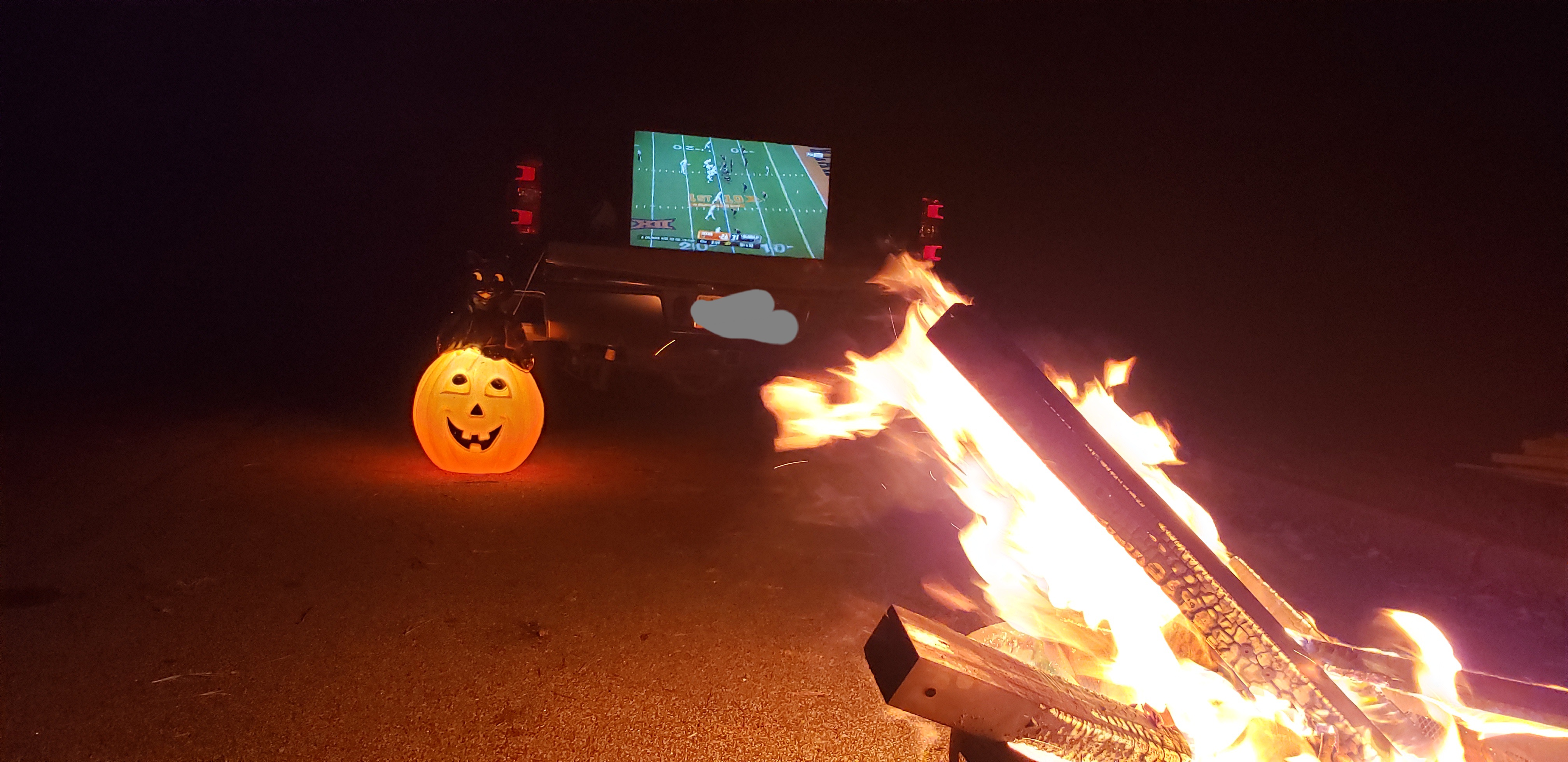 Дома тинейджеры конфеты раздают, а мы у соседей, тоже конфеты "раздаем". Скоро пицца подъедет. Костёр, футбол и пиво