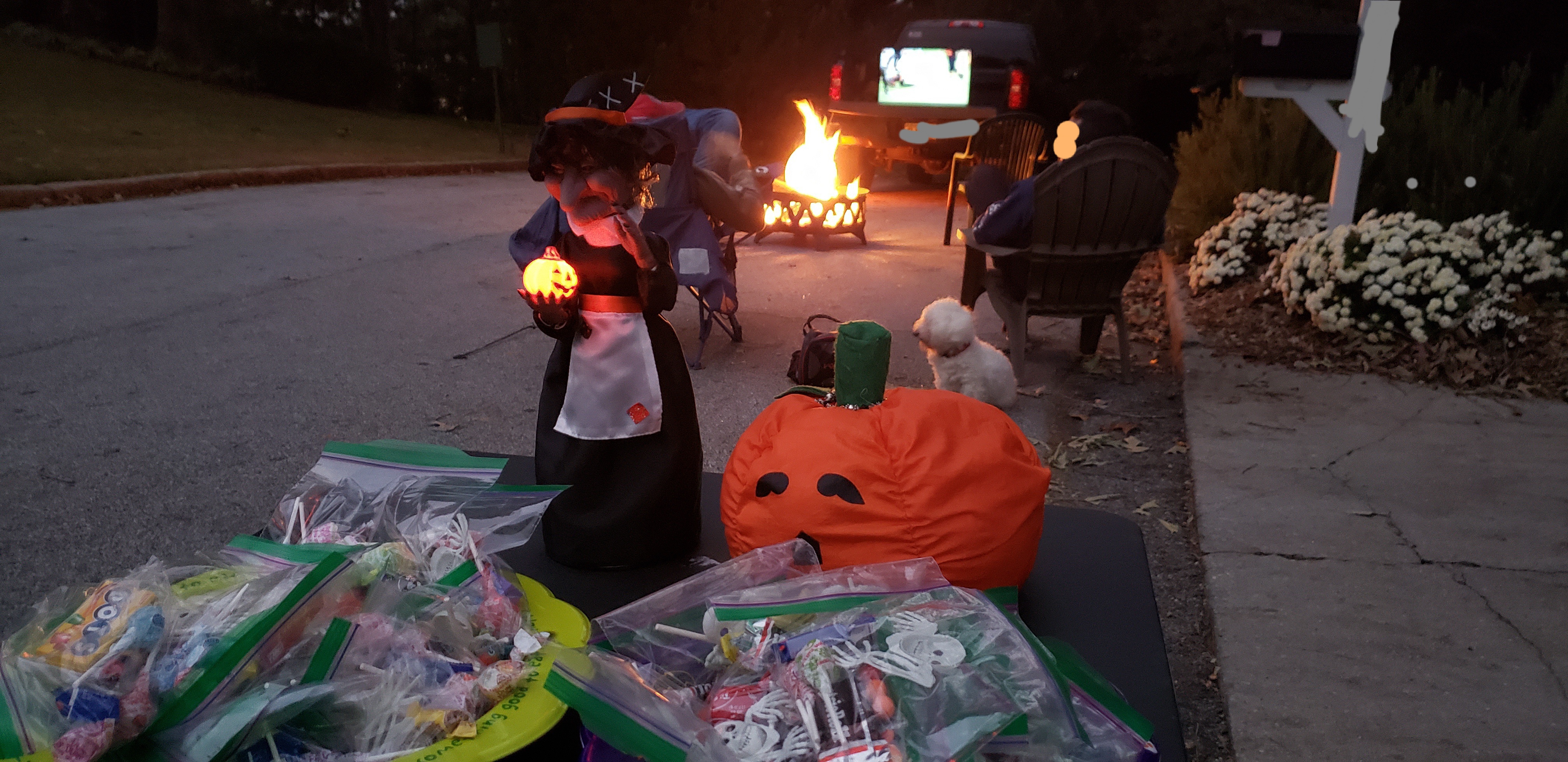 Дома тинейджеры конфеты раздают, а мы у соседей, тоже конфеты "раздаем". Скоро пицца подъедет. Костёр, футбол и пиво