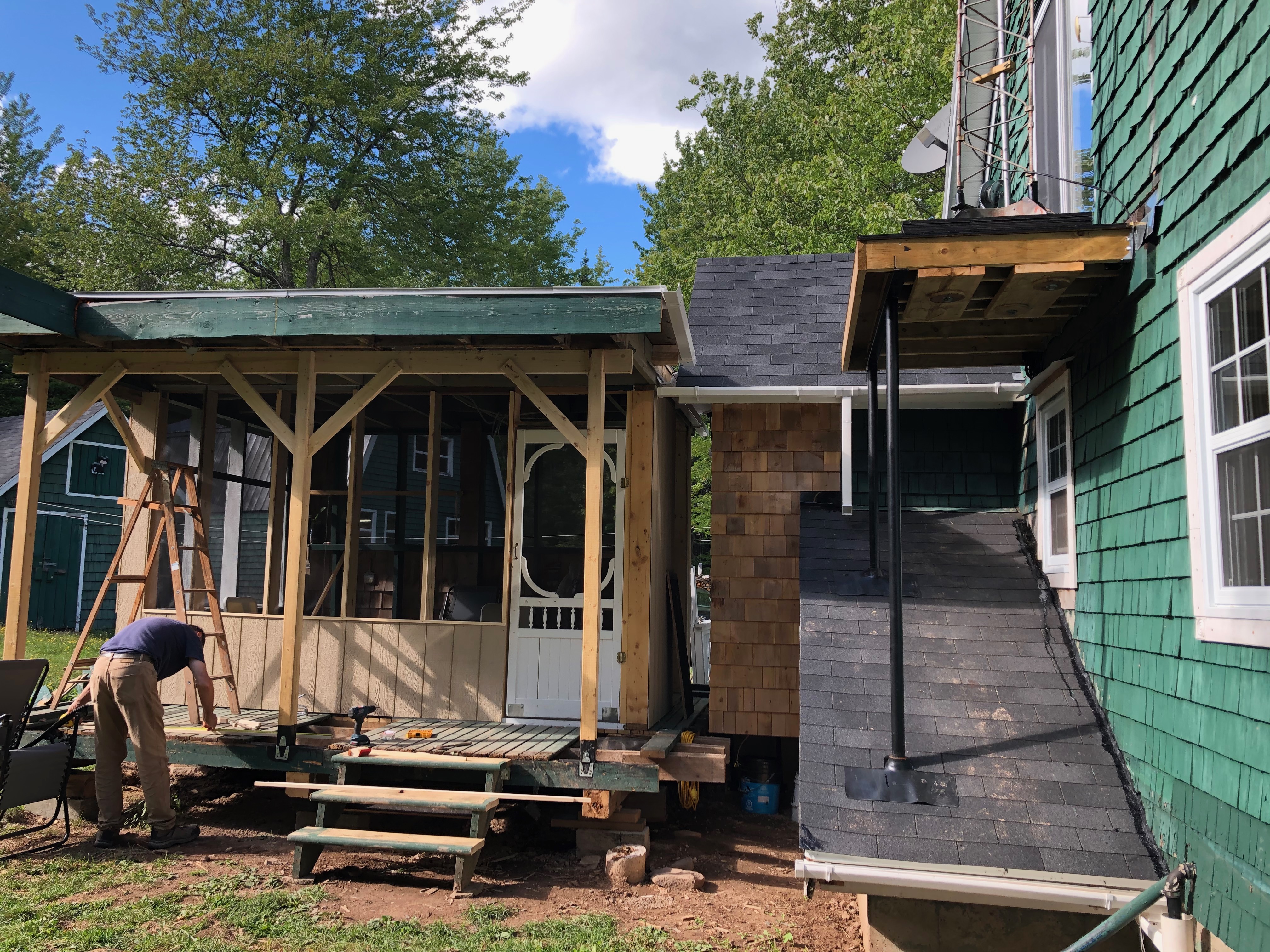 Мартина как нравится ваш домик! Цвет зелёный обалденный просто!! Сам материал обивки ( это же досочки?). Окнааа.. И сама конструкция дома, весь какой то резной. Пристройка доделаете будет замечательно. Именно в таком домике сидеть длинными канадскими вечерами зимой . Очень нравятся такие строения.