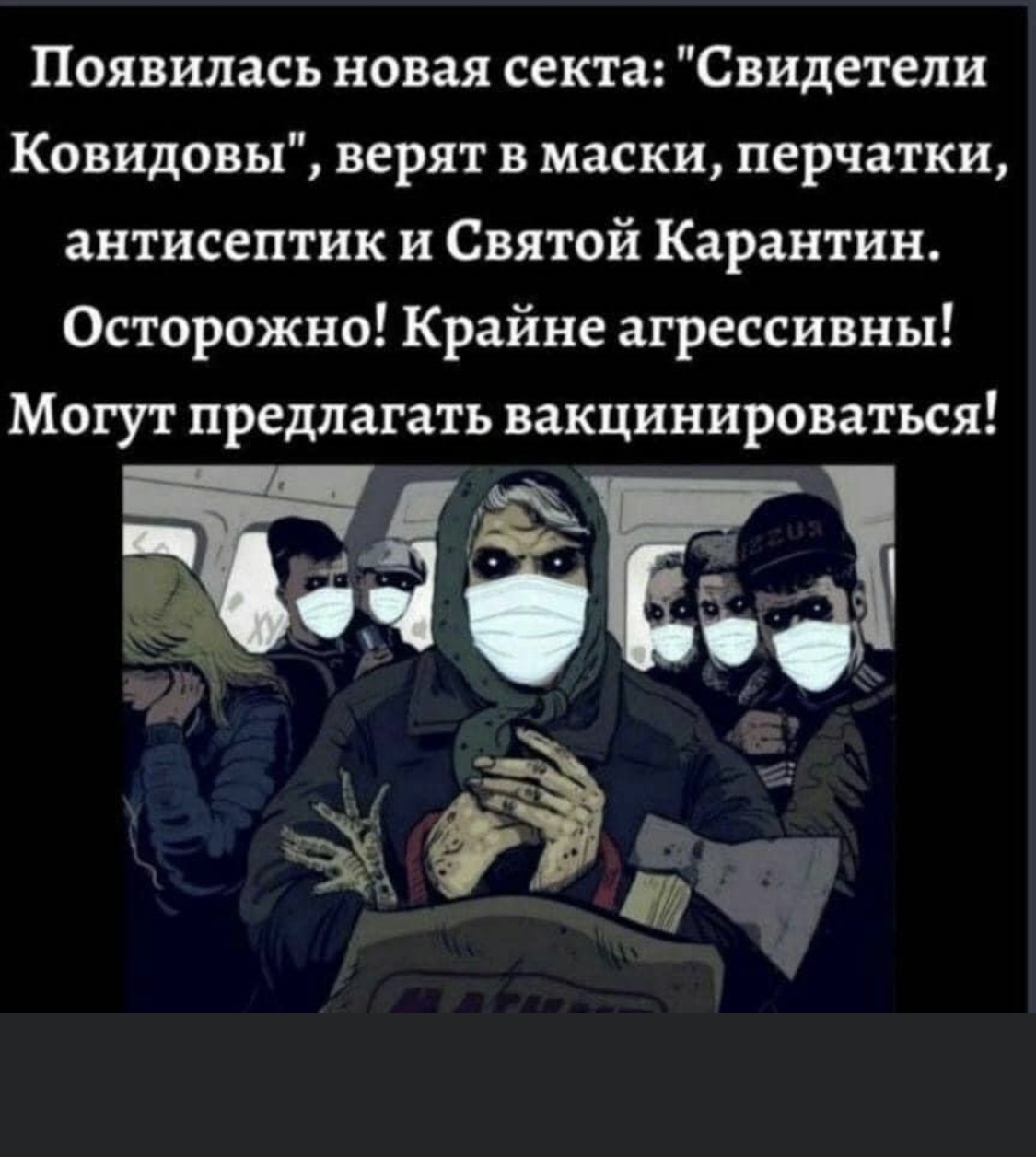 ЕСЛИ ВЫ НЕ БУДЕТЕ СОПРОТИВЛЯТЬСЯ намордочно-ротозатыкочному режиму, то дальше все будет гораздо хуже! Я вам обещаю! Проснитесь! Выходите из Секты свидетелей коронавируса и секты маско-веров. Останешься там - станешь полным ковидиотом! Вся информация о фуфлопандемии: