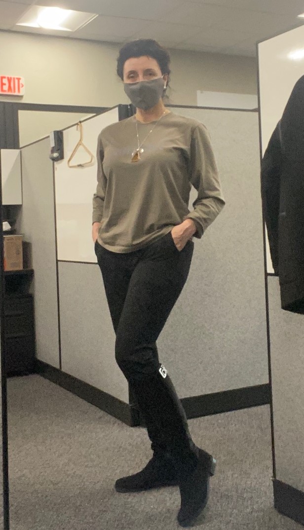 Купила сапожки в субботу https://www.6pm.com/p/calvin-klein-ada-black-suede-neoprene/product/9322847/color/118841 (шепотом: за $20, новые с этикеткой, в своем любимом аутлете Half and Half, они там были за полтинник, но я попала в день распродажи) Конечно сразу в понедельник и одела  Надо еще будет продумать, что с ними носить