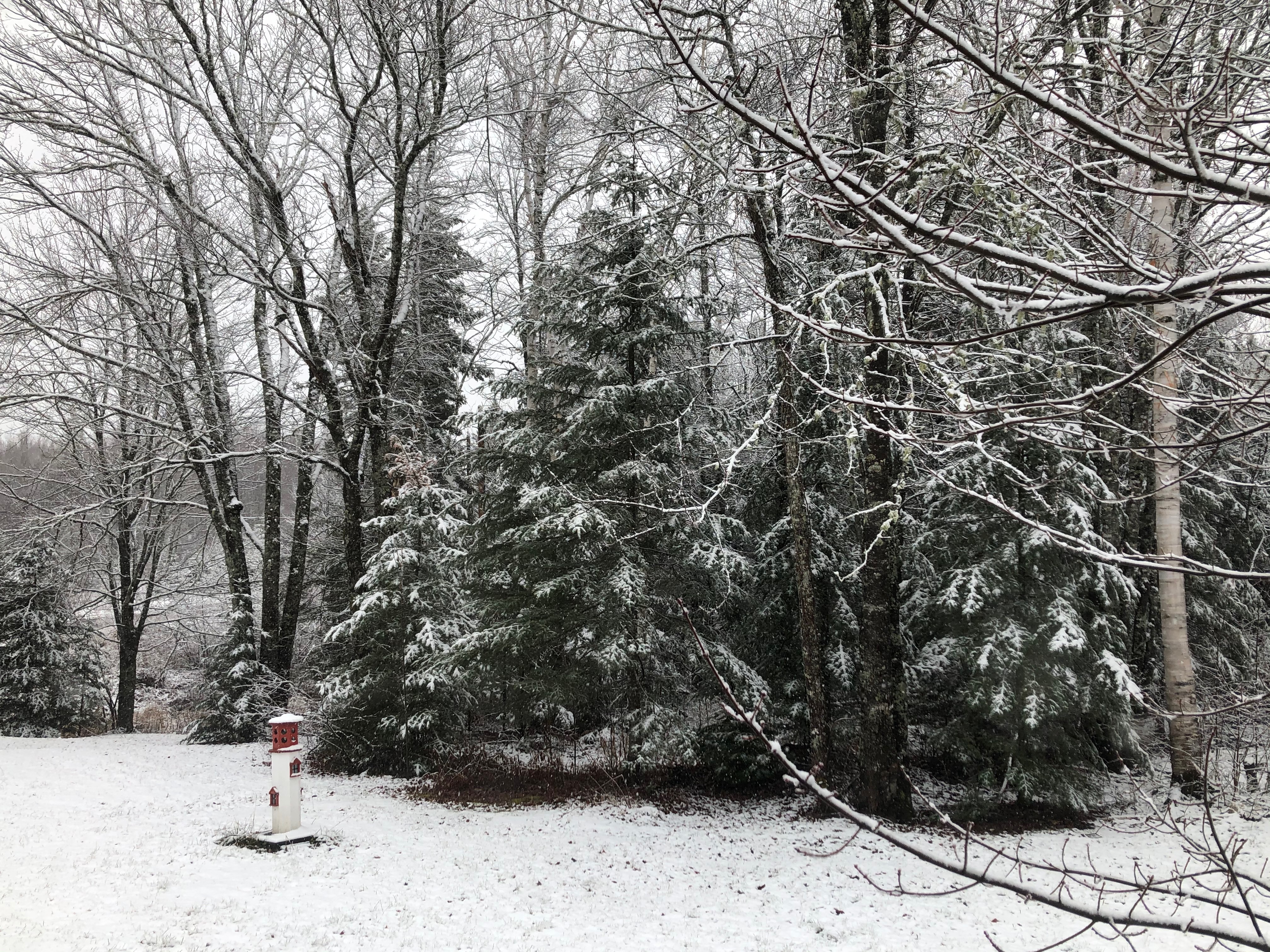 И первый снег у нас. Найдите птичку))).