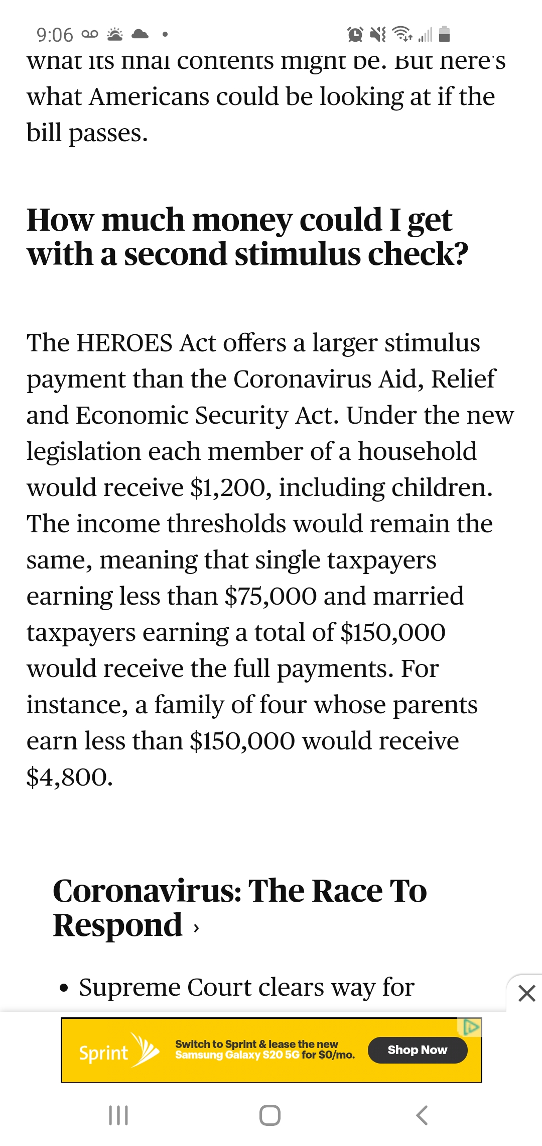 No stimulus check. A payroll tax cut, proposed by Vice President Mike Pence and other White House officials, that would allow workers to keep more of their paychecks. The president has insisted a payroll tax must be part of the second rescue package, according to The Washington Post.