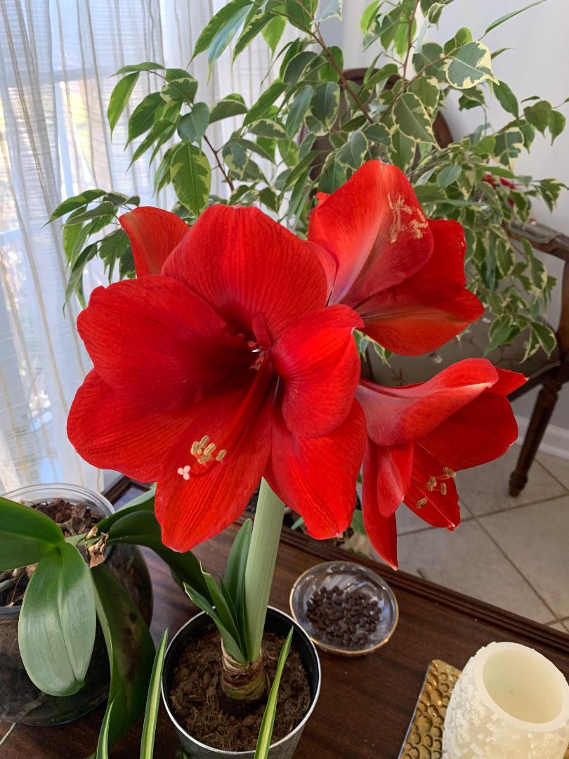 Кстати, про Волмарт.Амарилисы все были на 5+!И за 5 $ всего.  Мощные такие. Вот у меня,как в детских садах называли-"зеленый уголок " образовался  .