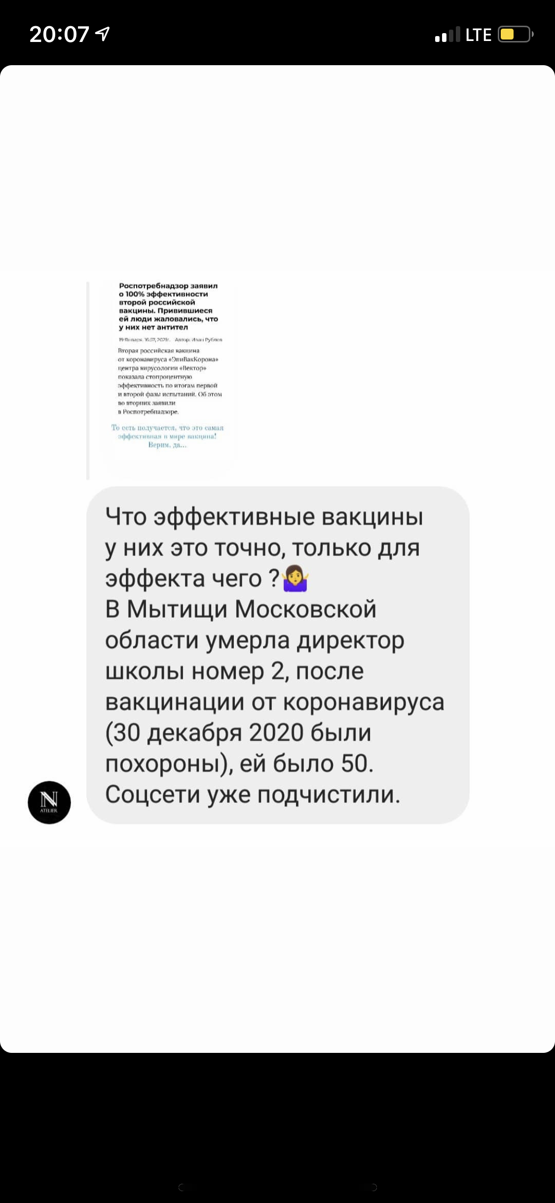 Как мы писали ранее, в региональном Минздраве официально подтвердили информацию, что главврач калужской скорой помощи Виктория Кардаш за несколько дней до смерти привилась от коронавируса.