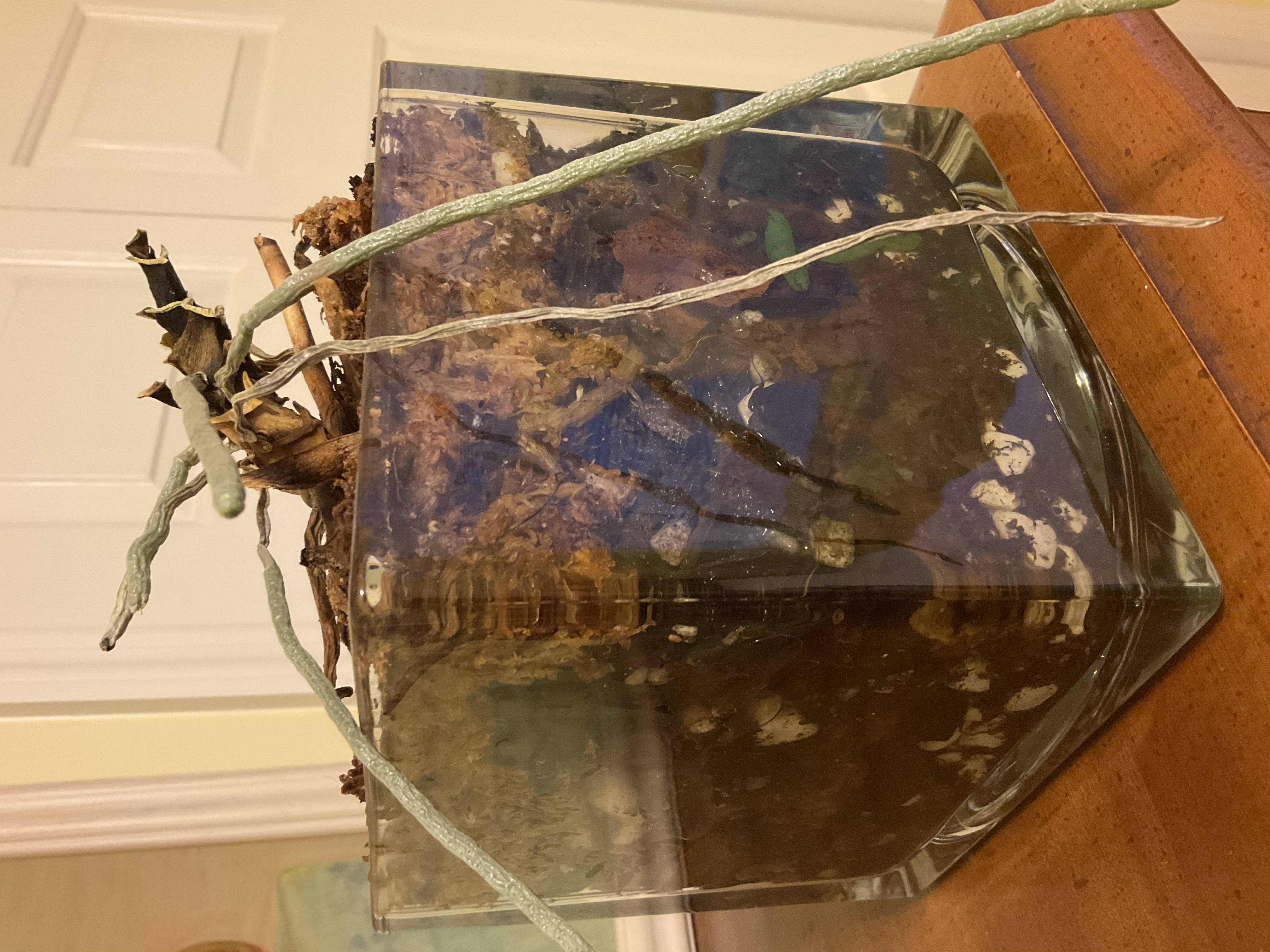 Бэйлик наверное к тебе вопрос и к орховодам. Орха стояла в тёплом но темноватом месте, отращивала новые листочки, я перенесла ее на южную сторону, но там намного холоднее, она сбросила все листья и засохла. Хоть воды я в стекляшку немного наливала, все было влажное. Вообщем она засохла видимо от недостатка воды и холода. Но корни просвечивают зелёные и пару воздушных корней живые. Можно ли ее оживить. Перенесла в тёплую комнату и налила 1/3 воды с удобрением.