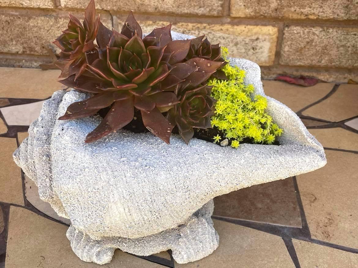 OklaXoma писал(а): На днях дозасыпала кактусовую клумбу булыжниками. Ну она планировалась как кактусовая, но небольшие какты не очнеь удачно там смотрятся - не видно их среди камней. оставила агавы да юкки, еще чола там торчит тоже высокий, да пара опунций небольших. Агавы вырастут - будет красиво (только когда они там вырастут , малышки совсем) Да, работа огромная проделана  Если учесть-сбор камней, там же еще наверное внизу и пленка защитная от сорняков проложена. Но... (из собственного опыта)- со временем между камнями- ветер, птицы нанесут листья с деревьев, семена, что образует питательную почву и полезли сорняки. Мне честно это не понравилось. Воспользовалась интернет-советами - под некоторые камни, сыпанула совочек грунта и подсадила из Лоуса сукуленты из группы Stonecrop, буквально по корешку. " Коврики" разрастаются, заполняют пустоты между камней, сорняку места не будет, ну и так пестренько получается, если учесть, что они круглый год сохраняются, у меня тмину очень нравится между камней. Может у тебя и другие планы-только кактусы, ты знатный кактусовод-написала так на всякий случай, если что... Там смотрю и "башмак" пристроился, нравится-не вычурно получилось  Я года 3 назад посадила 1 каменную розу в большую ракушку, так красиво получилось.В этом году смотрю-створки ракушки стали закрыватся, розу сплющило....ракушке наверно сто лет в обед-не знаю, почему ее "плющит".