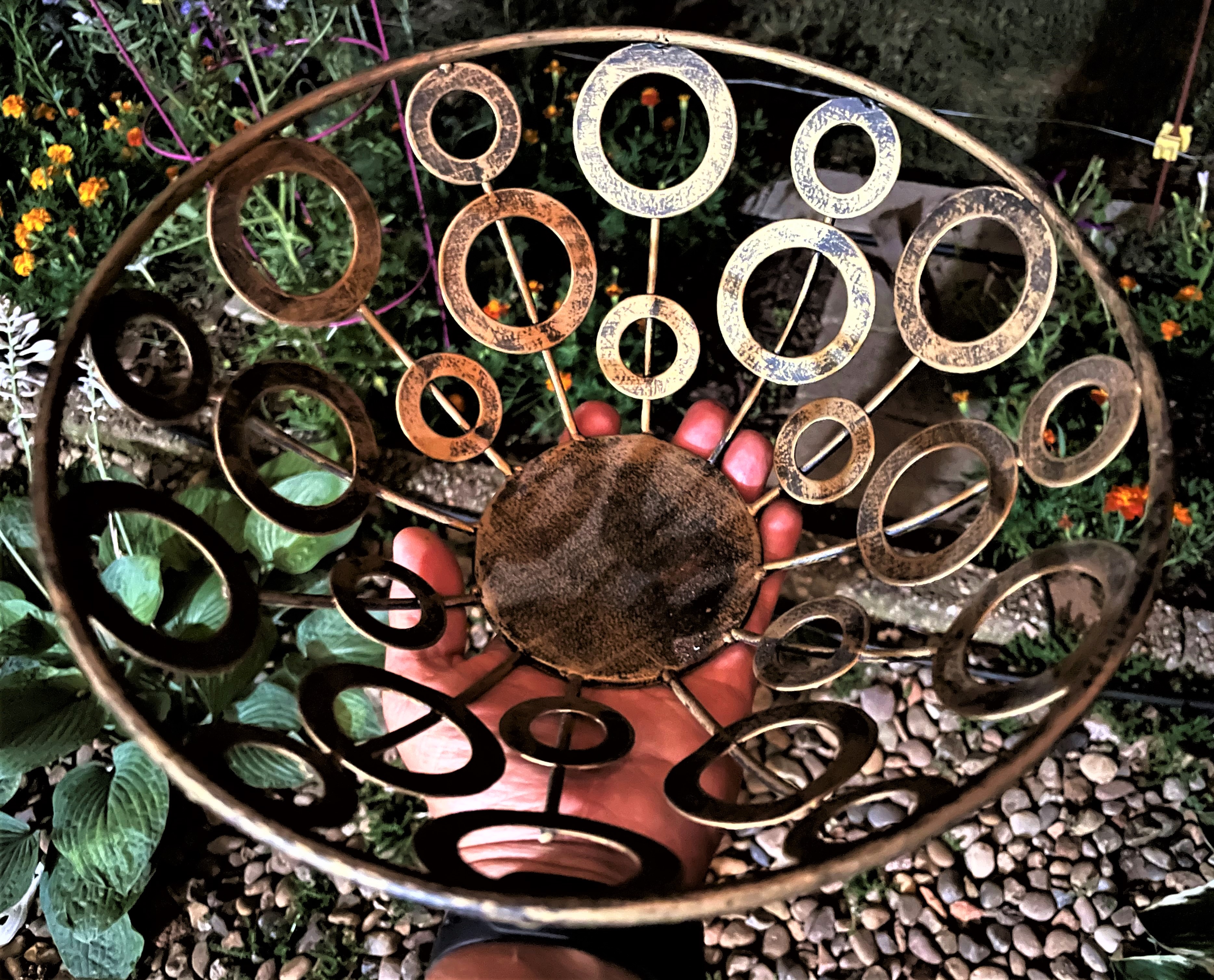 Lyuna писал(а): OklaXoma писал(а): Вчера доделала вот этот бетонный слив (как правильно этот тазик называется?) старый был весь расколотый. Ну уж не знаю, насколько я все правильно там сделала, пока дождей не было, тчоб проверить. Еще Космеи начали цвести, один кустик вот такой красавец  It's beautiful! You are so crafty:) I had the same broken piece of resin slate plaque, and I do not know how to fix it. And your cosmos are nice too:) PS. I found a hanging basket, finally:):) The same one you posted last time. So, thank you  Сыпасиб могу подсказать, как я заливала - было обычное ведро, треснутое. Отрезала кольцо нужной ширины, с одной стороны разрезала - тоись просто лента получилась. сантиметров 5 шириной. Установила в нужном месте, если маловато - надставить еще куском такой же ленты. развела бетон, который по ошибке вместо простого цемента приобрела - *просто добавь воды* - густо, чтоб не растекалось, ну и залепила внутри этого ведерного ободка. Края повыше. к сливу - пониже. Перчатки не забудьте. Накрыть влажной тряпкой и оставить на ночь или день, тряпку убрать и вуаля. При желании вот можно как-то там украсить. Можно просто загладить цементом или плиточной затиркой, если вдруг после ремонта завалялась. Ой, а я какую вчера надыбала подвеску! Две. Завтра коко-лайнеры надо купить и что-то из этих штук соорудить. Пока самые дешевые кокосовые лайнеры в Доллар дженерал мне попались (там вместе с подвесной корзиной, кстати. с цепочками и крючками) В Доллар три вообще по рублю, но у них сезон садовый закончился и до следующей весны ничего не будет. Ну а поскольку мне их сейчас надо стало сразу многа  то хочется не по 8-10 баксов, а как-то подешевле. Пойду щелкну подвеску - в общем, это тоже люстра. Правда, пока не знаю, тчо и как в нее запихаю.