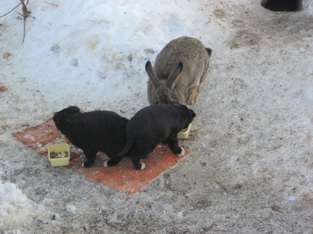 Но вот после нового года, у кролика появилось намного больше забот, так как какой-то неустановленный проезжий водитель выбросил в лесу трех щенят, оставив бедолаг на верную смерть.