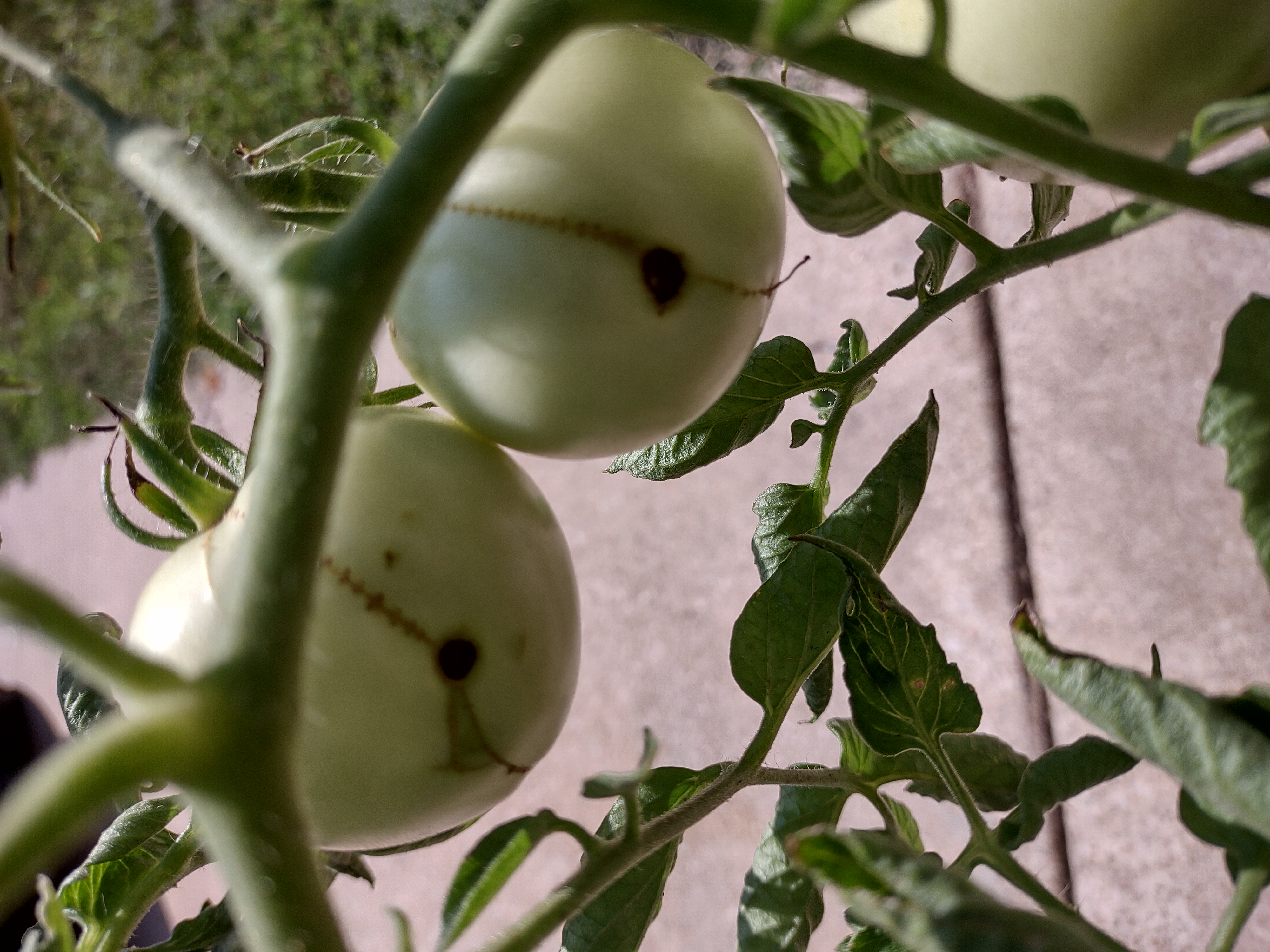 От чего на помидорах образуются круги как на фото? У меня уже многие такое имеют. А две на первом фото были такими с самого начала практически. И это не насекомое поело, по моему