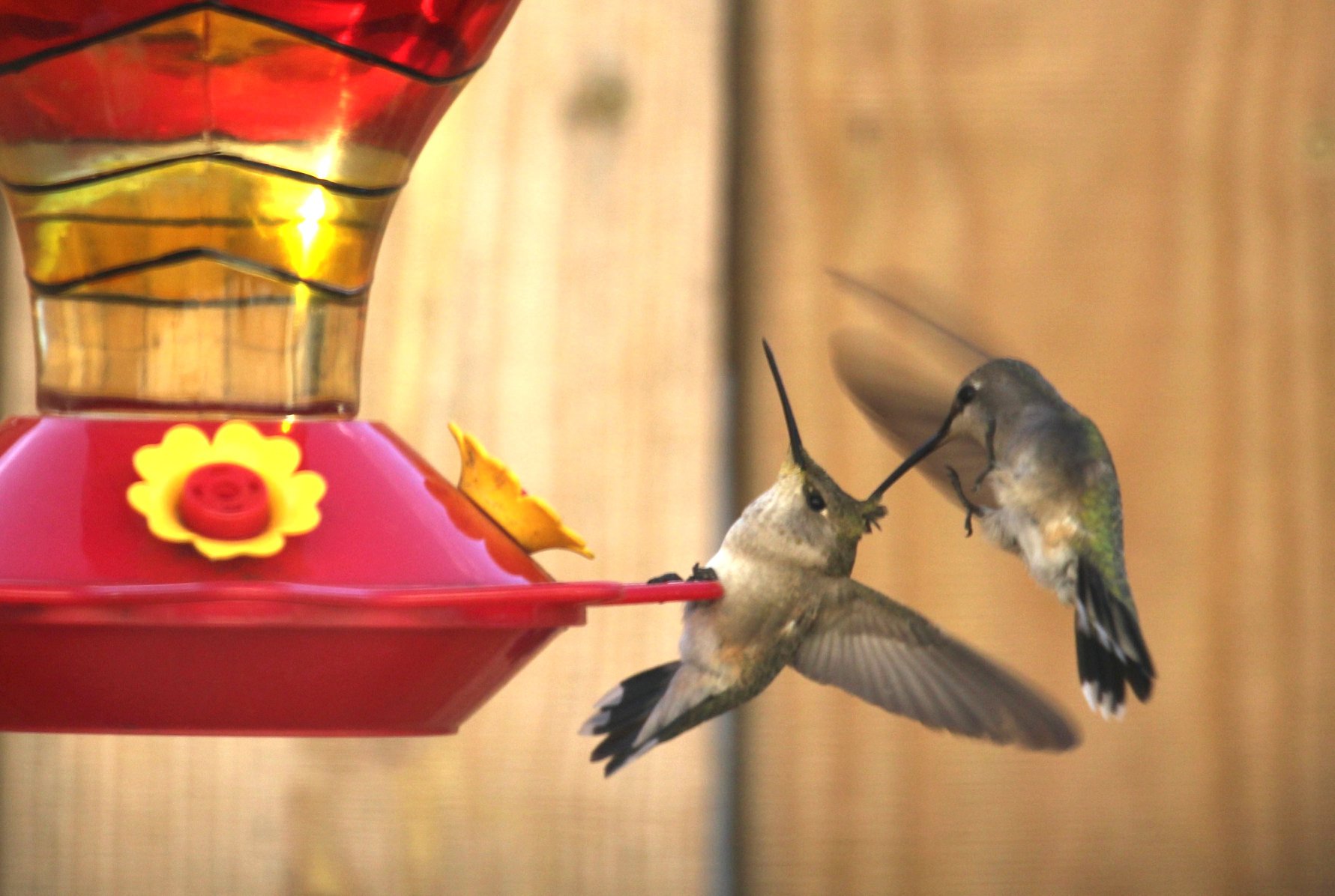 Учительница писал(а): Какой ястребиный взгляд у воробышка ну так попробуй удержаться на вечнопадающей ветке, еще и еду с нее собирать, ну и жевать сразу - тут у любого взгляд сосредоточится Maribella писал(а): Да что воробышки, у меня колибри за цветы дерутся как злобные птеродактили  на редкость недружелюбные птички Однако сейчас, когда они начинают мигрировать, вполне могут сидеть пачкой на одной кормушке. Фотка не этого года и да. не в сезон миграции