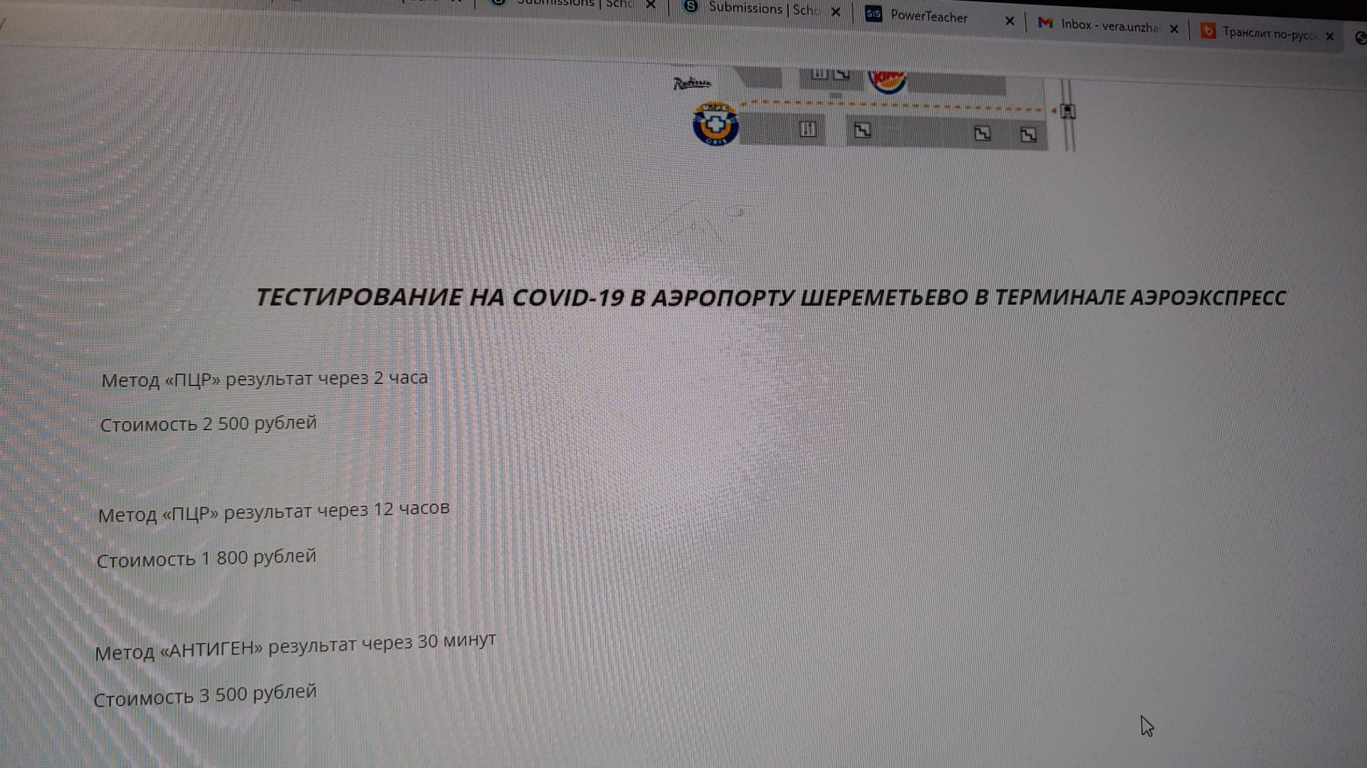 Mix Markiz и Бухгалтер, я согласна с вами обеими. Скорее всего, Шереметьево будет лучшим вариантом. А в какие лаборатории в Шереметьево теперь обращаться в Ноябре? Я делала там тест за три часа в Архимеде в сентябре. Надо узнать работают ли они сейчас. Короче, если не в Москве живешь, то экспресс тест ПЦР это проблема.