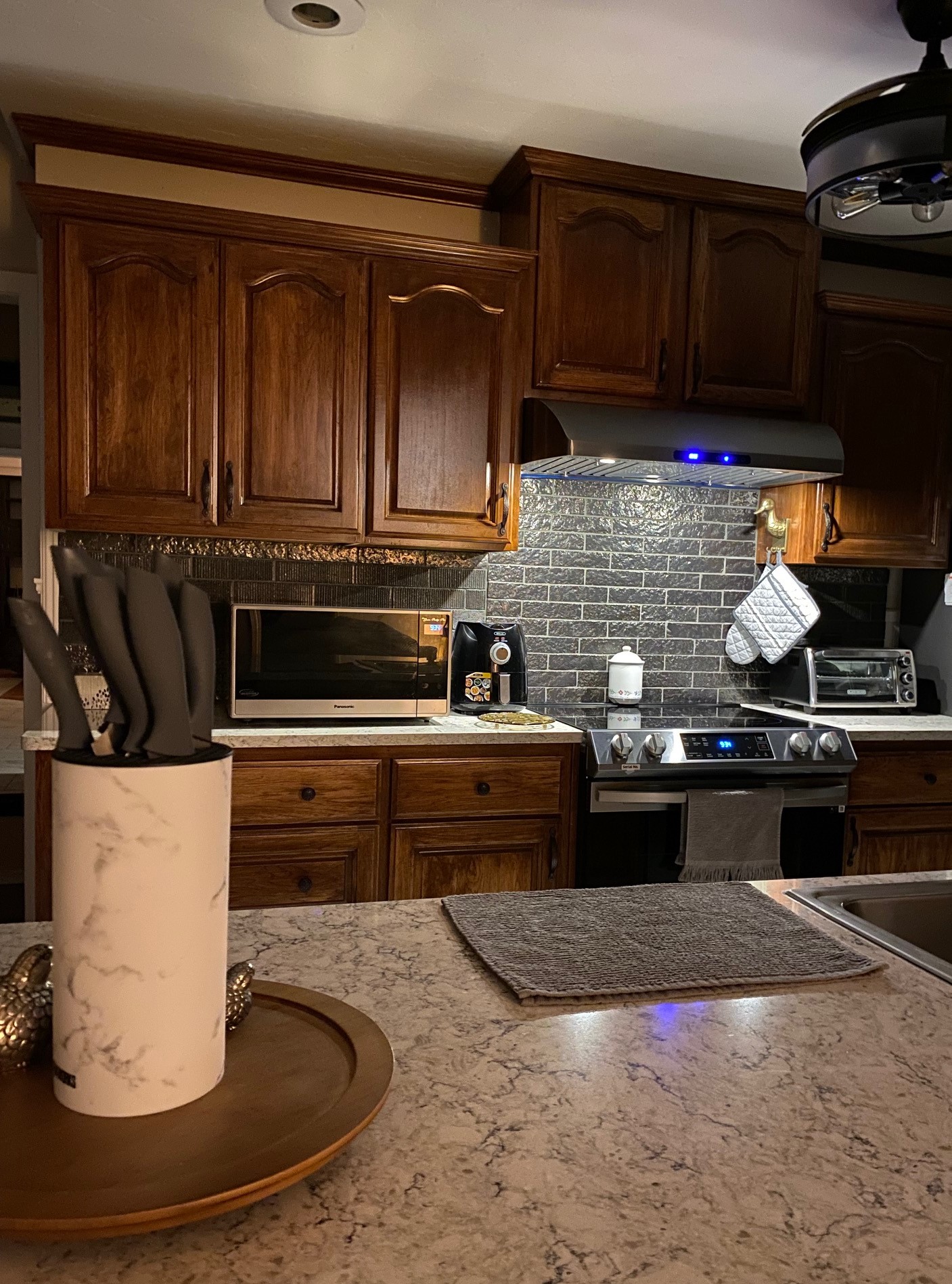 Но все равно еще остались недоделки  Электрик только в конце ноября придет чтобы заменить точечные светильники в зоне кухни на новые. Пока живем без них, с дырками на потолке