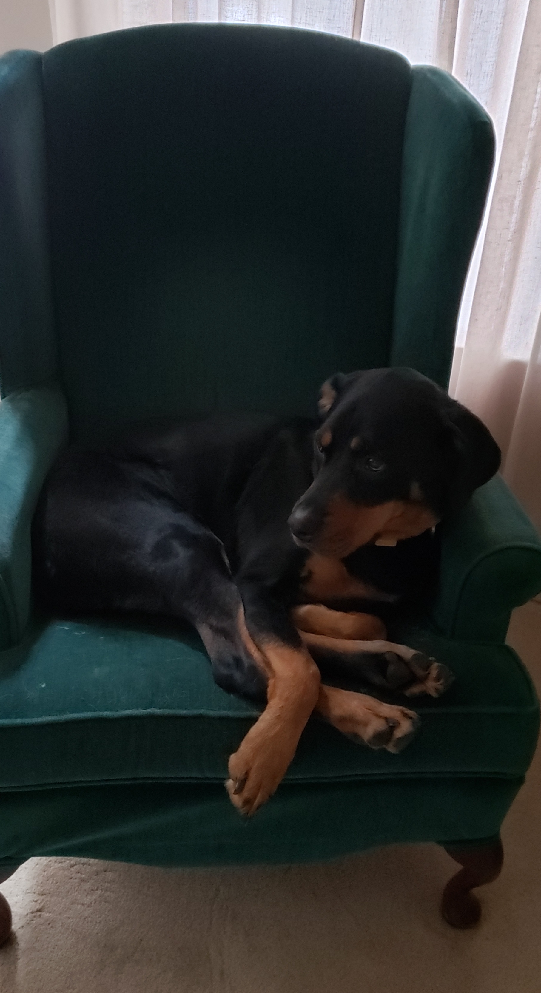 Ольга, поздравляю с покупкой! Наслаждайтесь! Кресло выглядит удобным и подушки мягкие. Надеюсь, с молниями? Ваш собак, смотрю, тоже принц диванов и кресел.