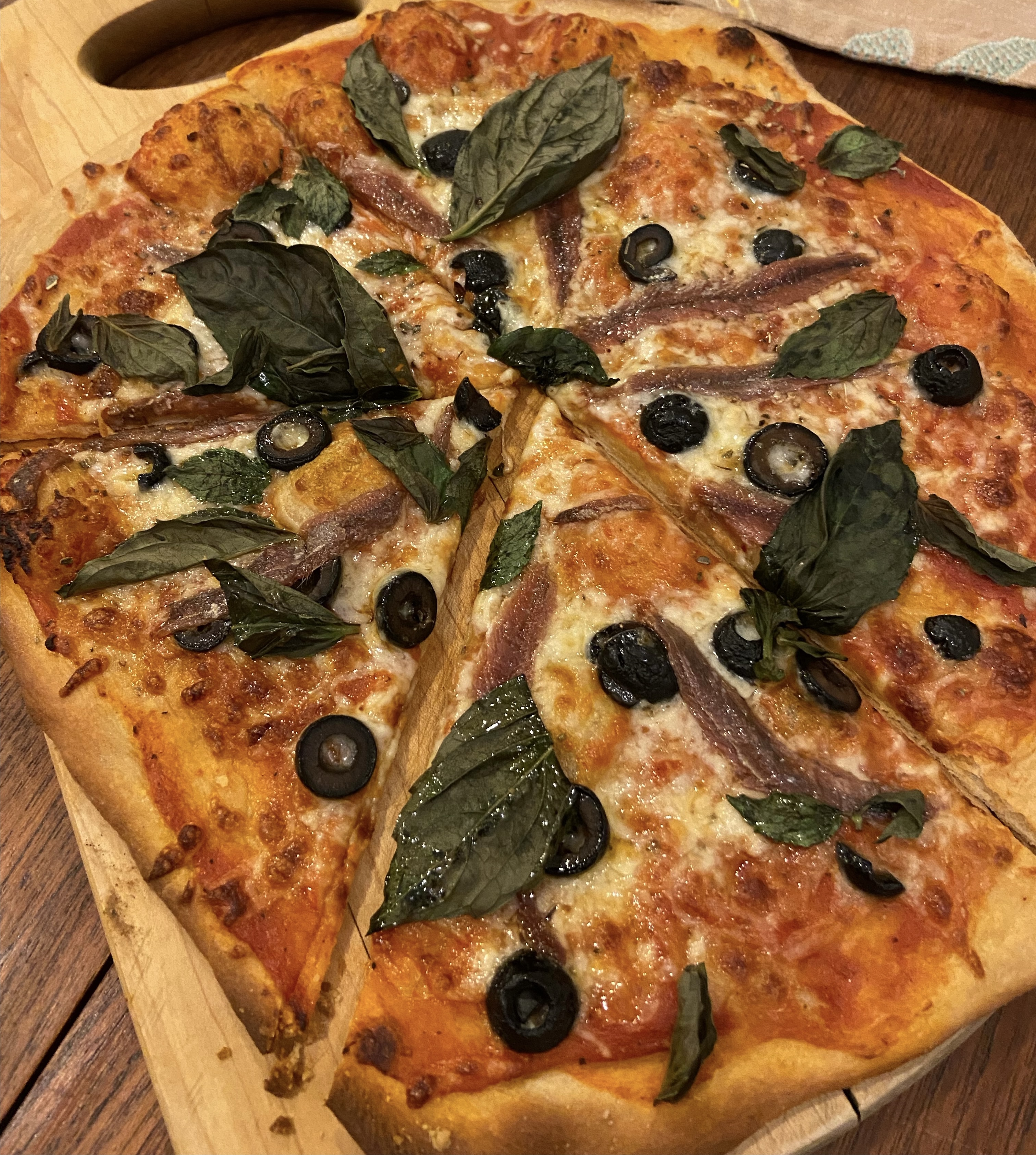 Nat, Уверена что твои анчилладосы вкуснее чем в ресторане. Я замесила тесто для naan bread. Но посмотрела как их пекут на откр огне и передумала - ну наффк и сделала пиццу. жалко было просто тесто выбрасывать.