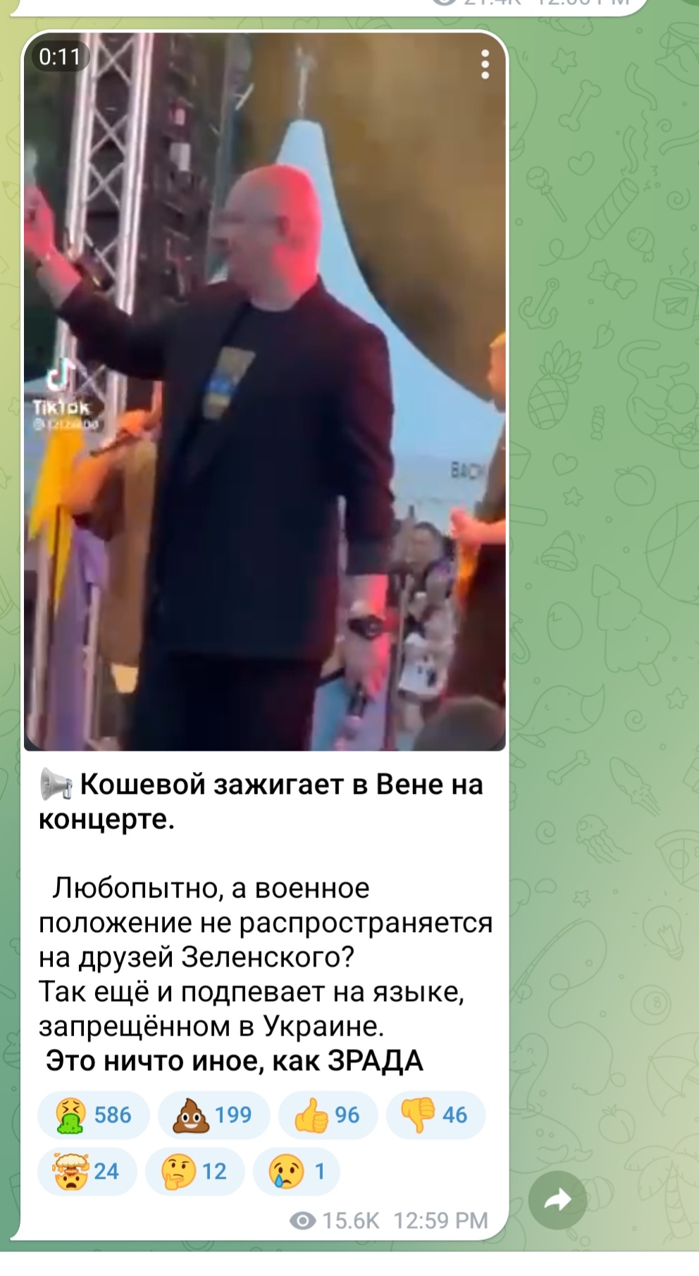 Любопытно, а военное положение не распространяется на друзей Зеленского? Так ещё и подпевает на языке, запрещённом в Украине. Это ничто иное, как ЗРАДА