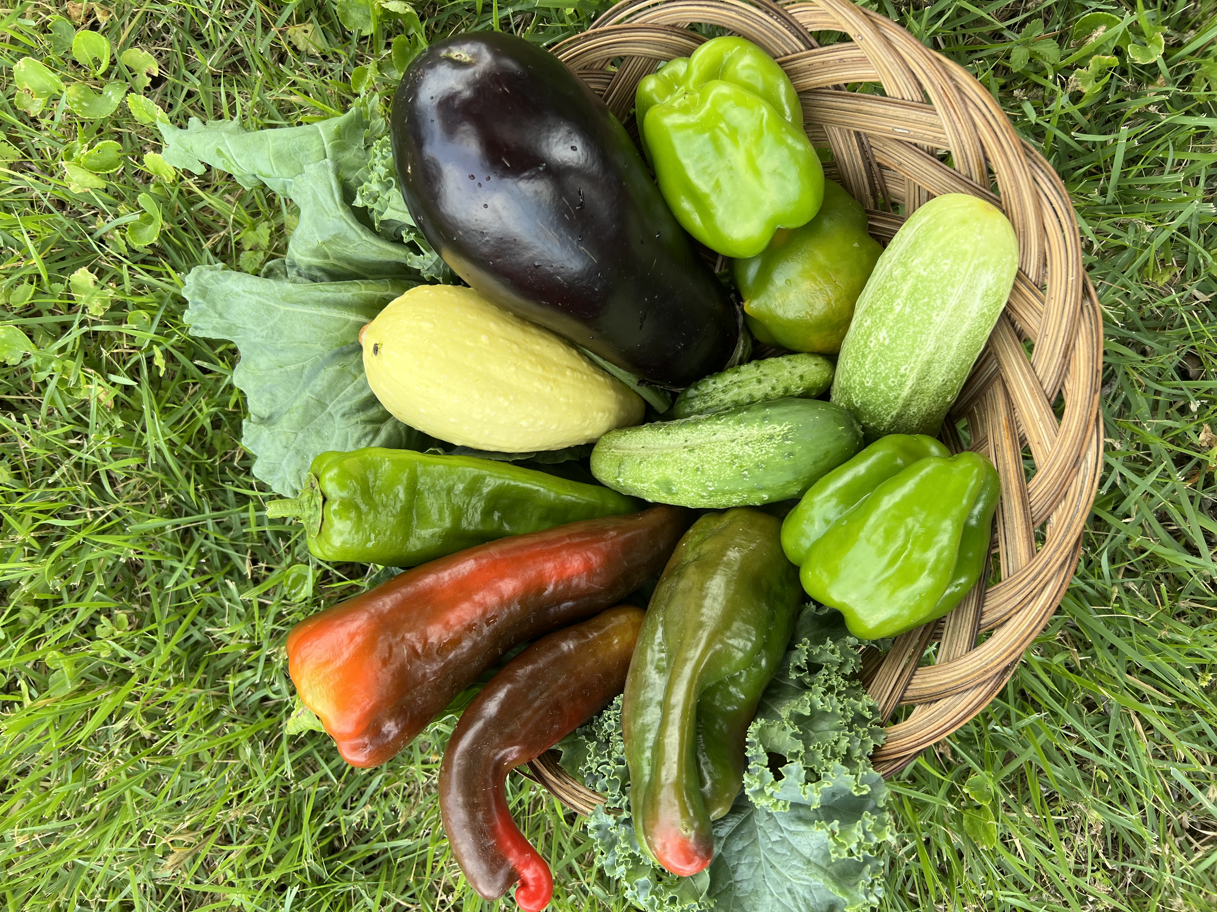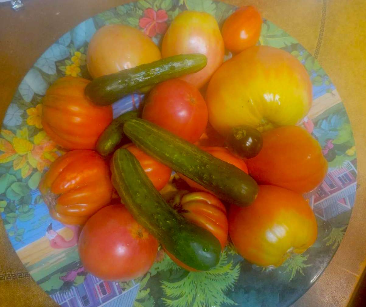 Небольшой урожайчик сегодня. Сажала всего понемногу чтобы только поесть в сезон и заморозить, консервацией не буду заморачиваться, до сих пор стоят закатки, закрутки всякие, не любители мы.