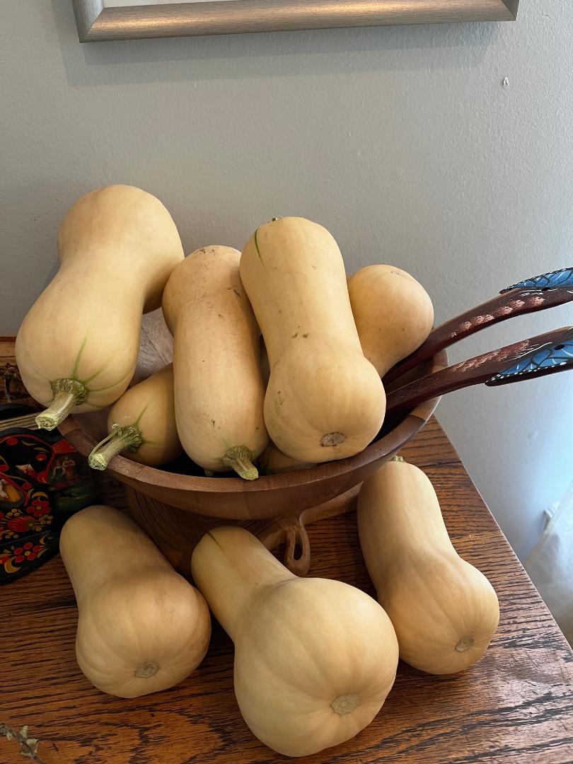 Baylee писал(а): Jaxi писал(а): У меня пока только кабачки наросли. И вместо зелено=полосатых батернаты. Колеус из семян вымахал. Класс! А баттернаты- отпад! И никакого борера... А какие они по вкусу? Как сквош? Они менее водянистые. Более плотная мякоть. Сегодня суп буду с ними варганить. Но минус- кожа толстая. Их никто не жрет. Да пока у меня особо нет злодеев. Только и урожай так себе.  Я об огурцах....Помидоры мелкие зреют, Большие-российские еще на кустах, Но там сорт такой, что они не краснеют. Так что, может, и готовы. Скоро буду пробовать..