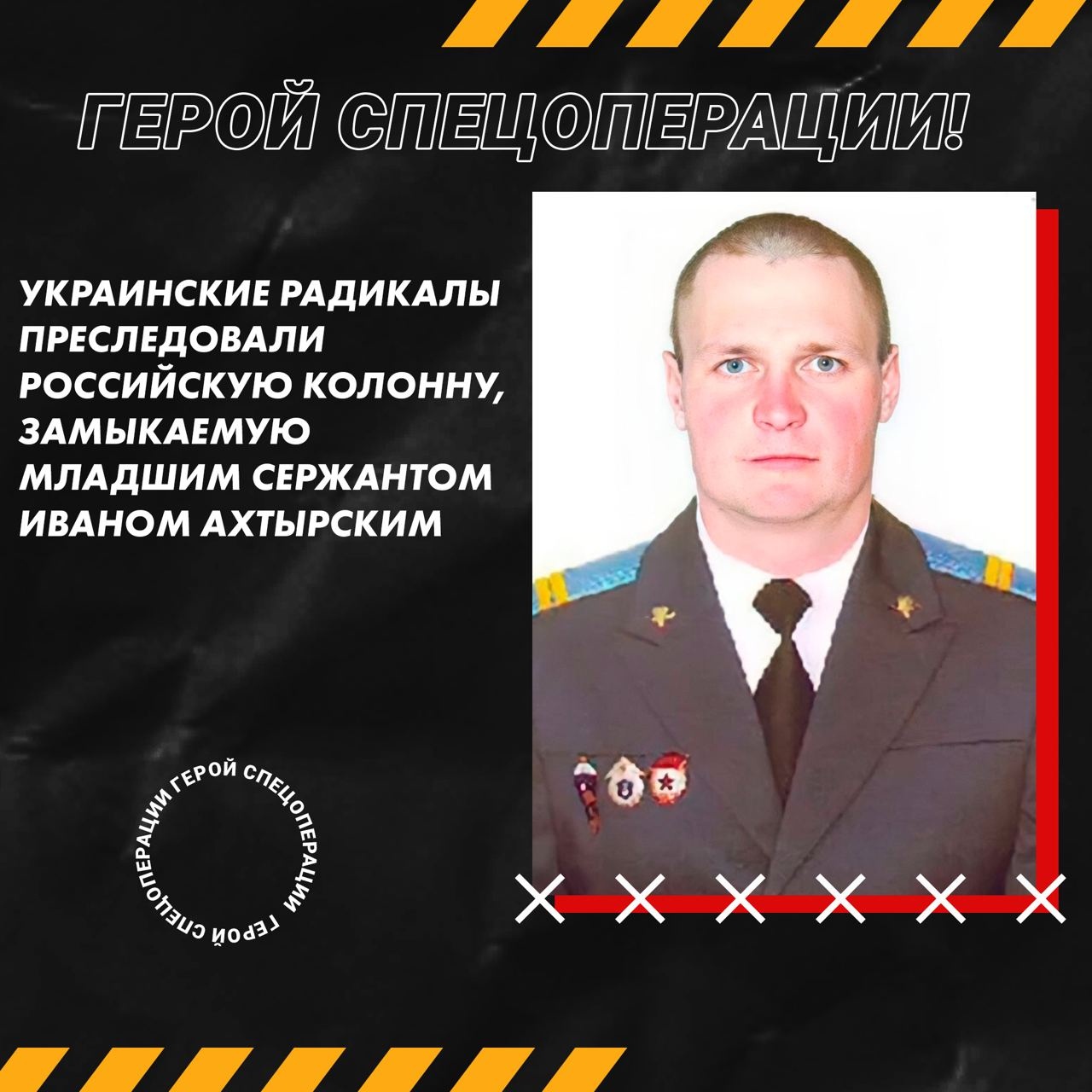 Украинские радикалы преследовали российскую колонну, замыкаемую младшим сержантом Иваном Ахтырским... Настоящий герой!