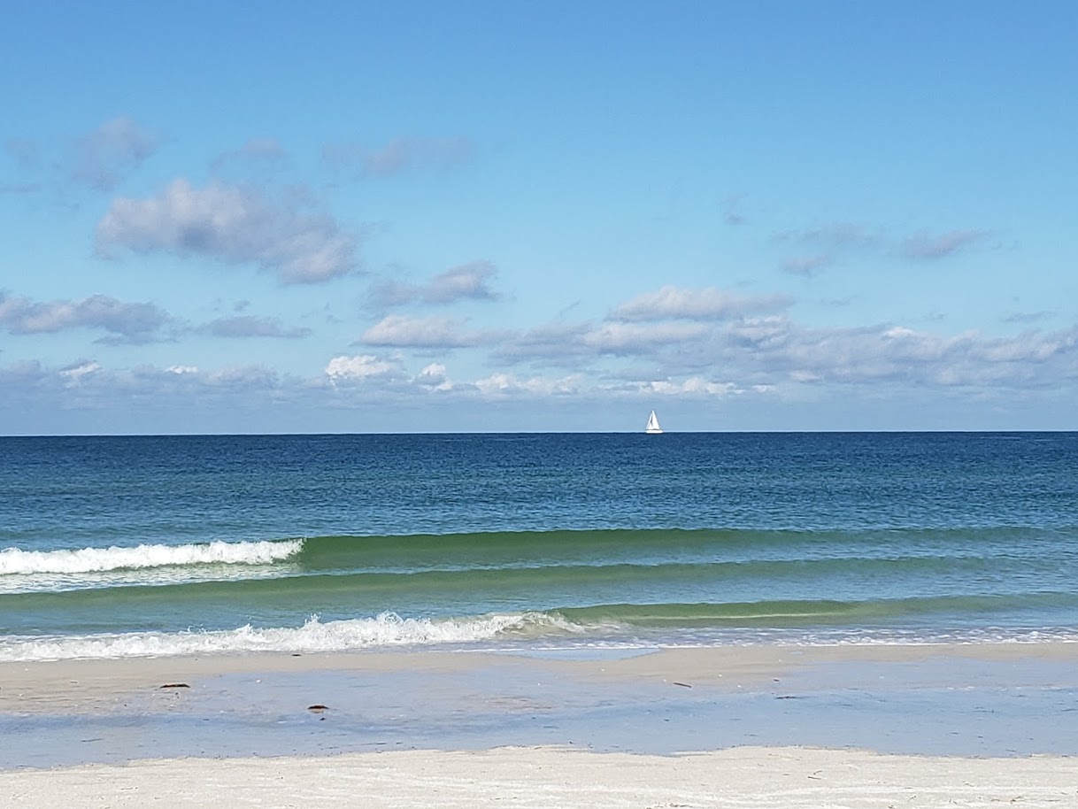 Как бы морем и меня не особо удивишь. Все таки островные пляжи и в подметки не годятся тем же пляжам в Дестине или в сторону Дайтоны. Такого белого песка как у нас во Флориде редко где сыщешь. А вот такого цвета воды мне не приходилось видеть ни на Мексиканском заливе, ни на Анлантике. Это вот что-то совершенно магическое. Может тут свет как то по-хитрому преломляется, я не знаю. Вот вам еще одна фотка "как есть". Прямо вот похоже что фильтром обработано в синий.