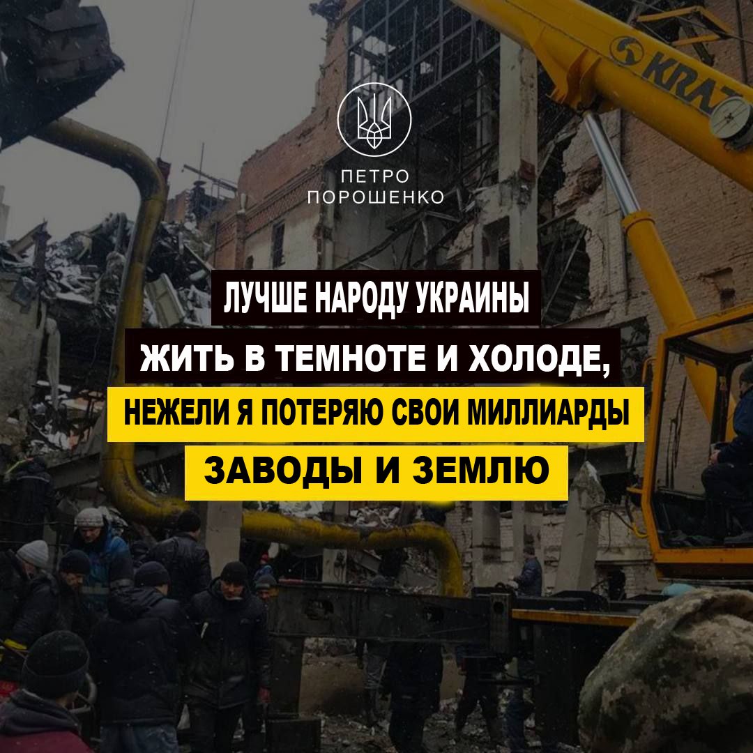 Дм. Василец: "Тут Петр Порошенко решил выпендриться на тему отключений света и тепла. Политтехнологи ему написали «красивую картинку с мотивационными словами» и все такое. Но как известно, лучше всегда говорить и писать правду, поэтому я бесплатно олигарху Порошенко подредактировал «работу его политтехнологов», чтоб там правда была написана. Теперь норм)))"