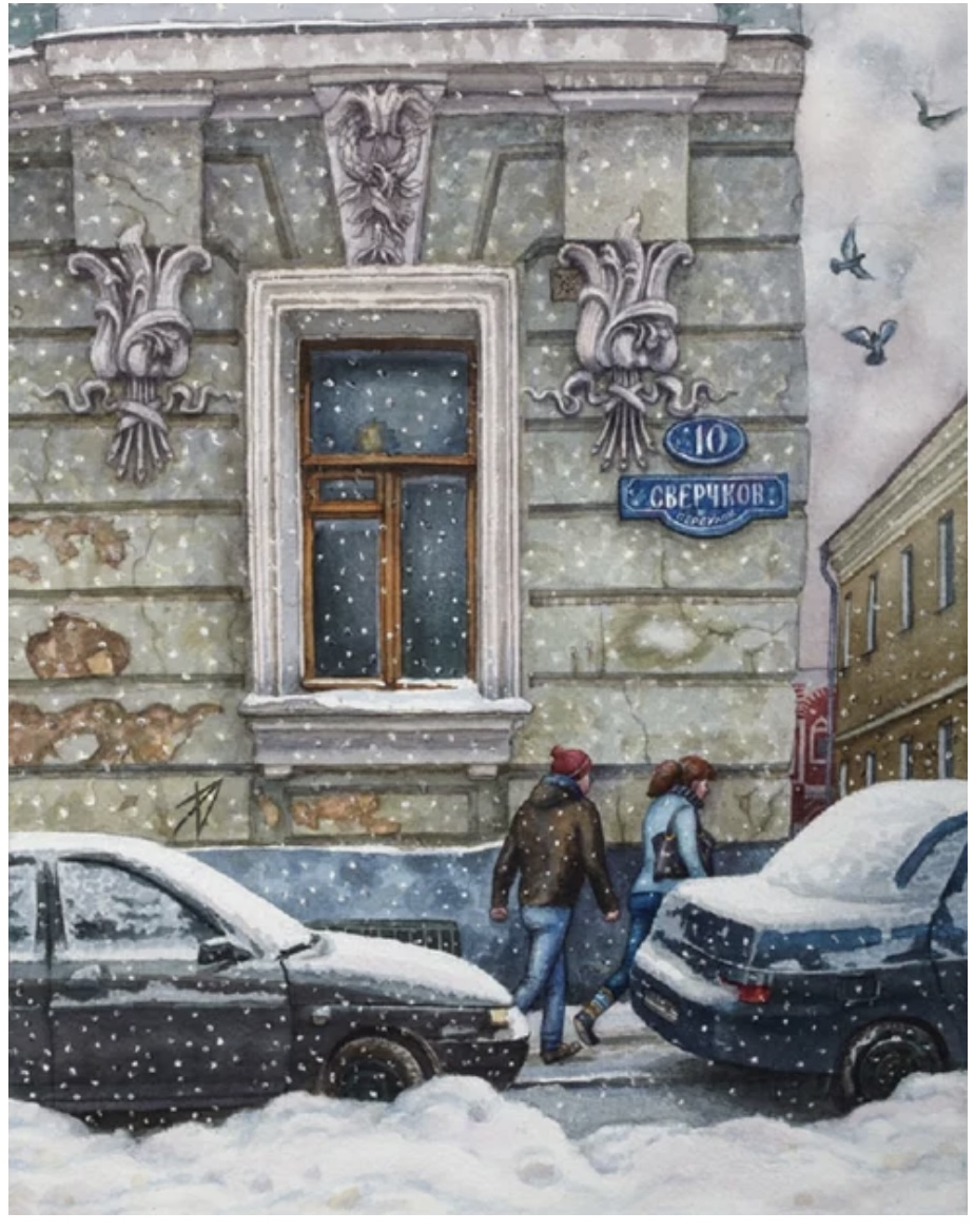 Если уж про художников речь зашла , То «Зима в Москве глазами художницы Алёны Дергилёвой» Она -талантище , люблю ее