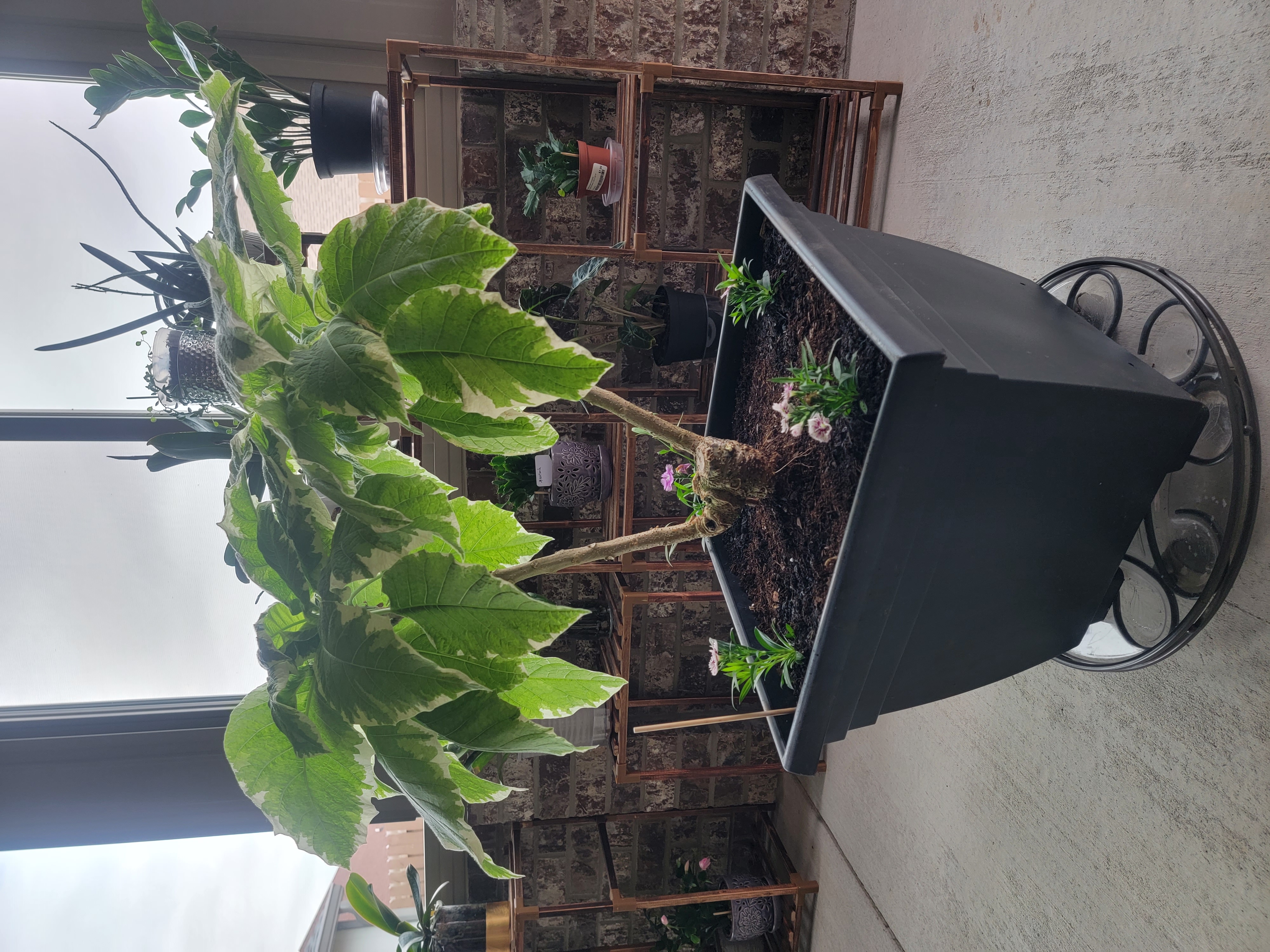 У нас 2й день дождь, временами переходящий в откровенный ливень... и то тепло, то холодно... Поэтому outside ничего делать не хочется. Трампушик в этом году не "замораживался", и после пересадки быстро ломанулся в рост