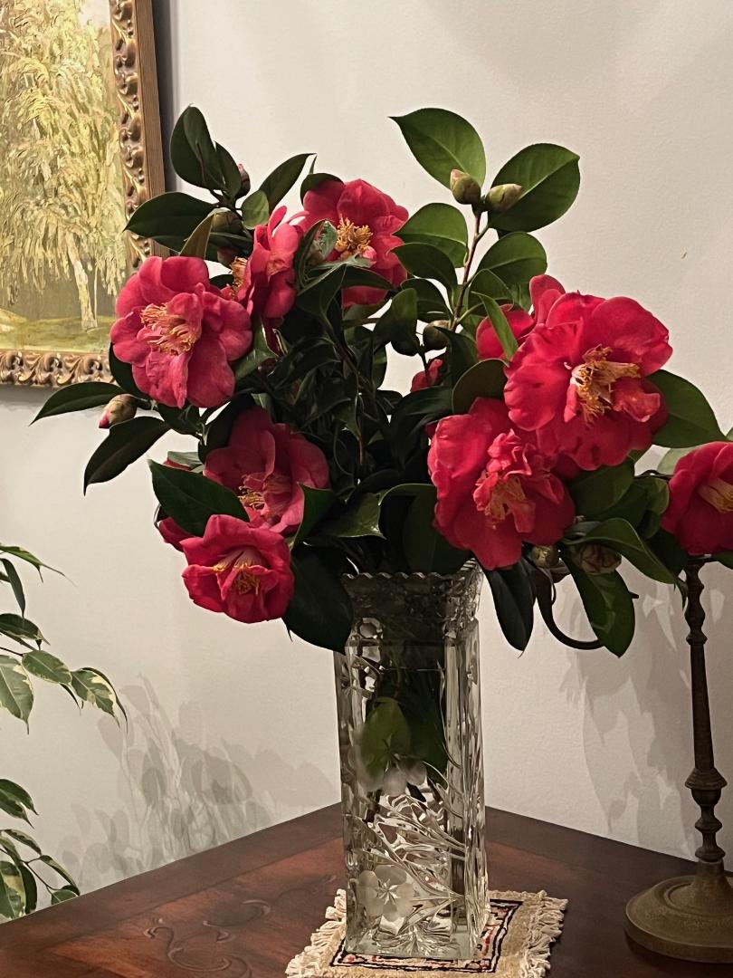 Бейли, последний слоник какой расчудесный... Я решила все по минимуму, лишь бы то, что есть, обиходить .Капуста созрела, Слов нет, какая же огромная разница с магазинной. Я ее не буду квасить, свежая -вкуснятина! Еще 6 посадила, Надеюсь , вызреет до жары. Кейл -Red Russian  буйствует!Силантро, конечно. Посадила еще камелию, к сожалению, когда принесла домой, оказалось, что в 5 галонном горшке -корешков с кулачок и как камень..  .Еще хочу камелию посадить-Perfection. Все ж так приятно, когда в январе куст покрыт кустами.Да и домой на срезку-отлично! Азалии сильно померзли, никогда до этого не было такого. Мало цветков.Срезаю домой. И обожаю их! Они этак по-японски как-то смотрятся,и довольно долго стоят. А! заехала с утра в Волмарт, кучу привезли луковичных. Пионы, клематисы, георгины..Ну вот зачем на верную смерть....Они не выживают у нас. Ну кроме них и другого много. И вот какие чудесные-красАВЧИКИ тюльпаны увидела, не могла не купить!!!!