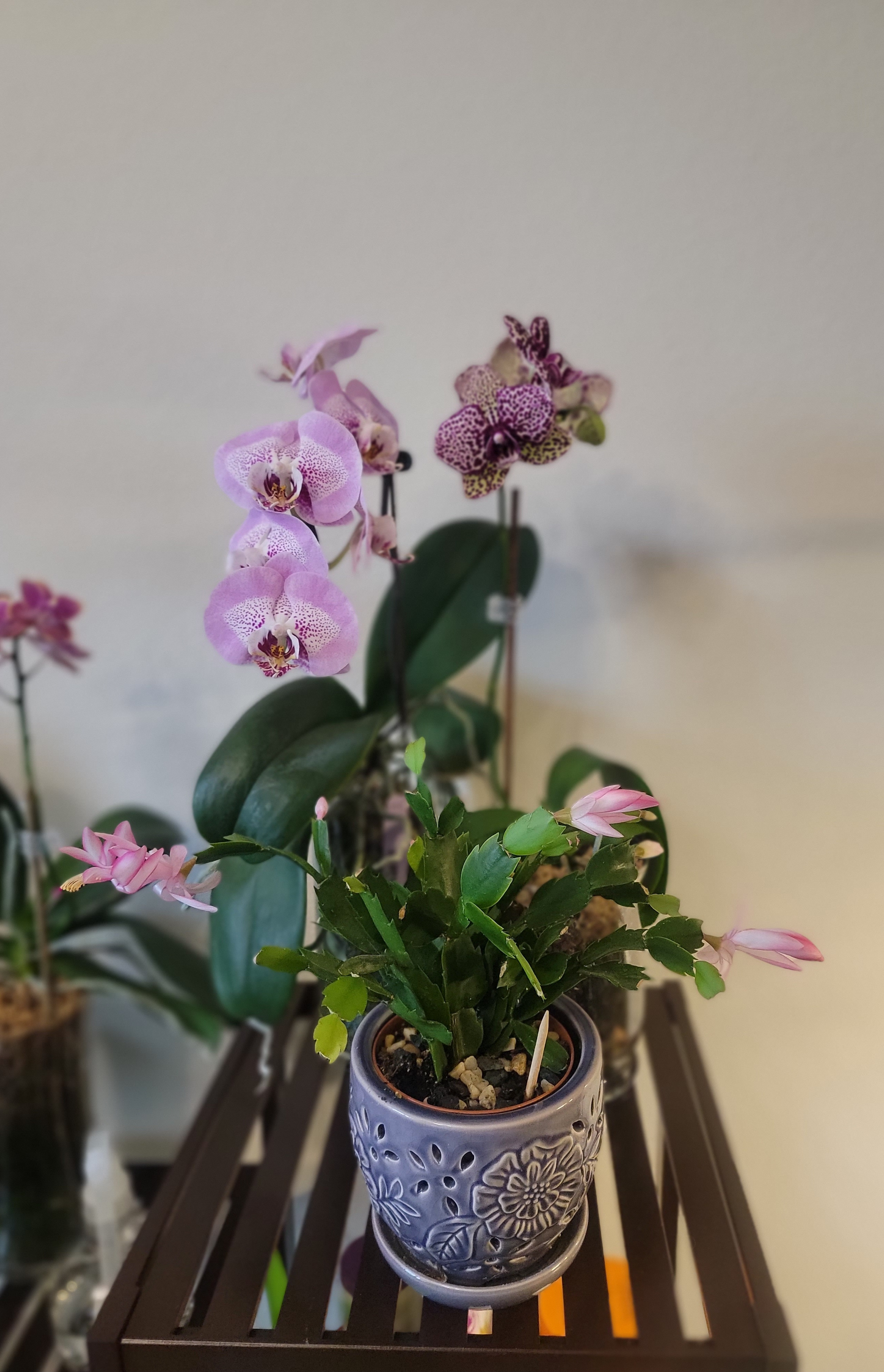 Сегодня в Лоус наткнулась на совершенно неверояные дендрофаленопсисы!!! Во-первых, необычные расцветки... не видела таких даже у российских орхолюбителей. Во-вторых, у белой-размер и форма цветка, как у онцидиумных ... и даже аромат присутствует. В-третьих, компактный размер (дендрофалы обычно довольно высокие). В-четвертых, прекрасно растут в вазах... никакой мороки с поливом. В общем, довольна как слон