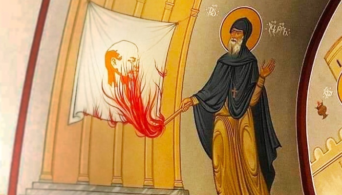 ps:Икона в женском монастыре в Грузии. Преподобный Гавриил (Ургебадзе) поражает Ленина в виде змеи.