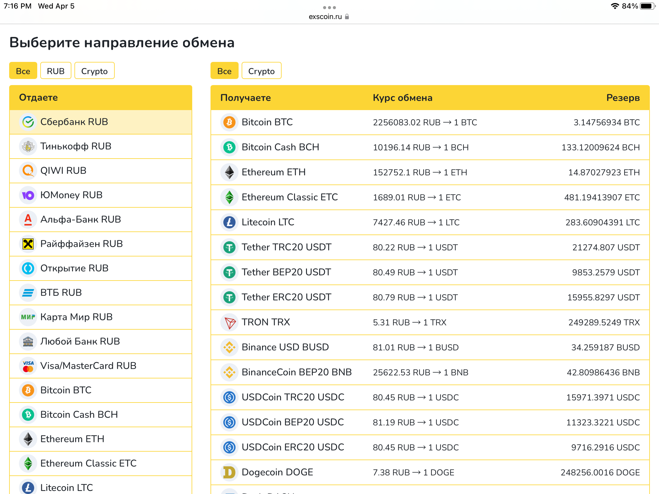 Вот этот крипто обменник тоже предлагает обмен на наличные; при этом курс на обмен налом выше намного, чем перевод рублей на карту МИР