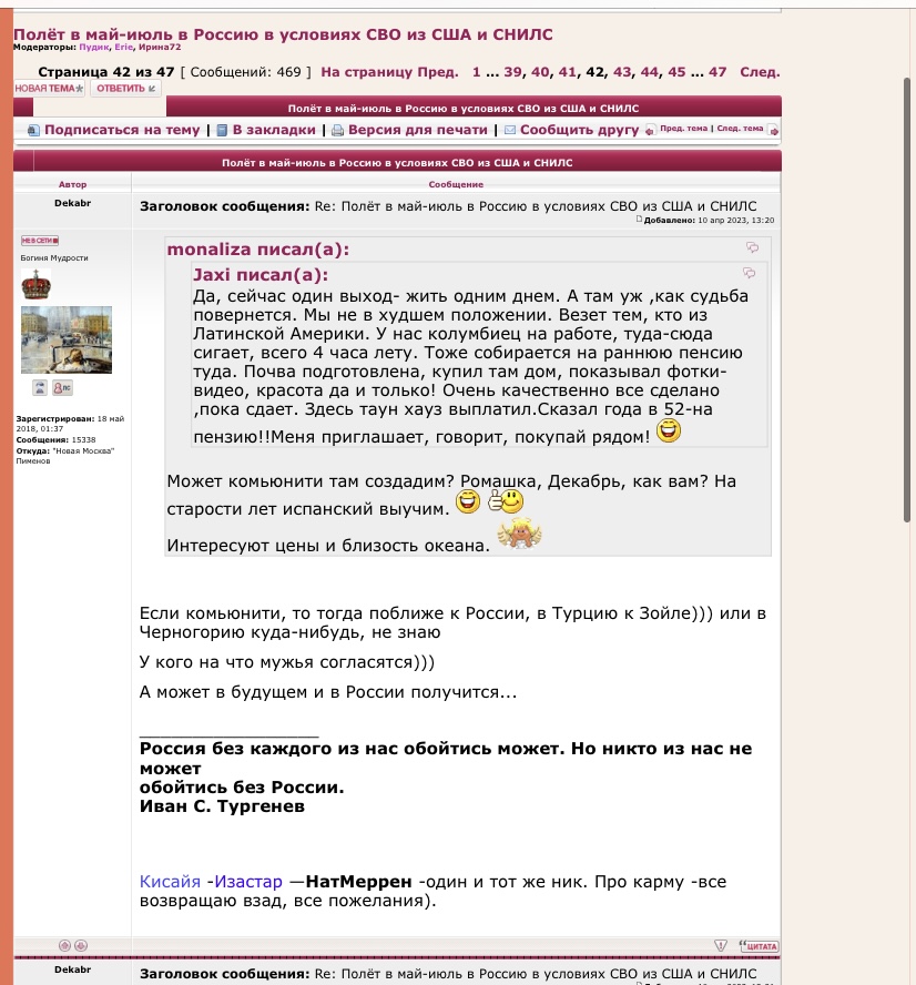 Заголовок сообщения: Re: Полёт в май-июль в Россию в условиях СВО из США и СНИЛС Добавлено: 10 апр 2023, 19:28 |