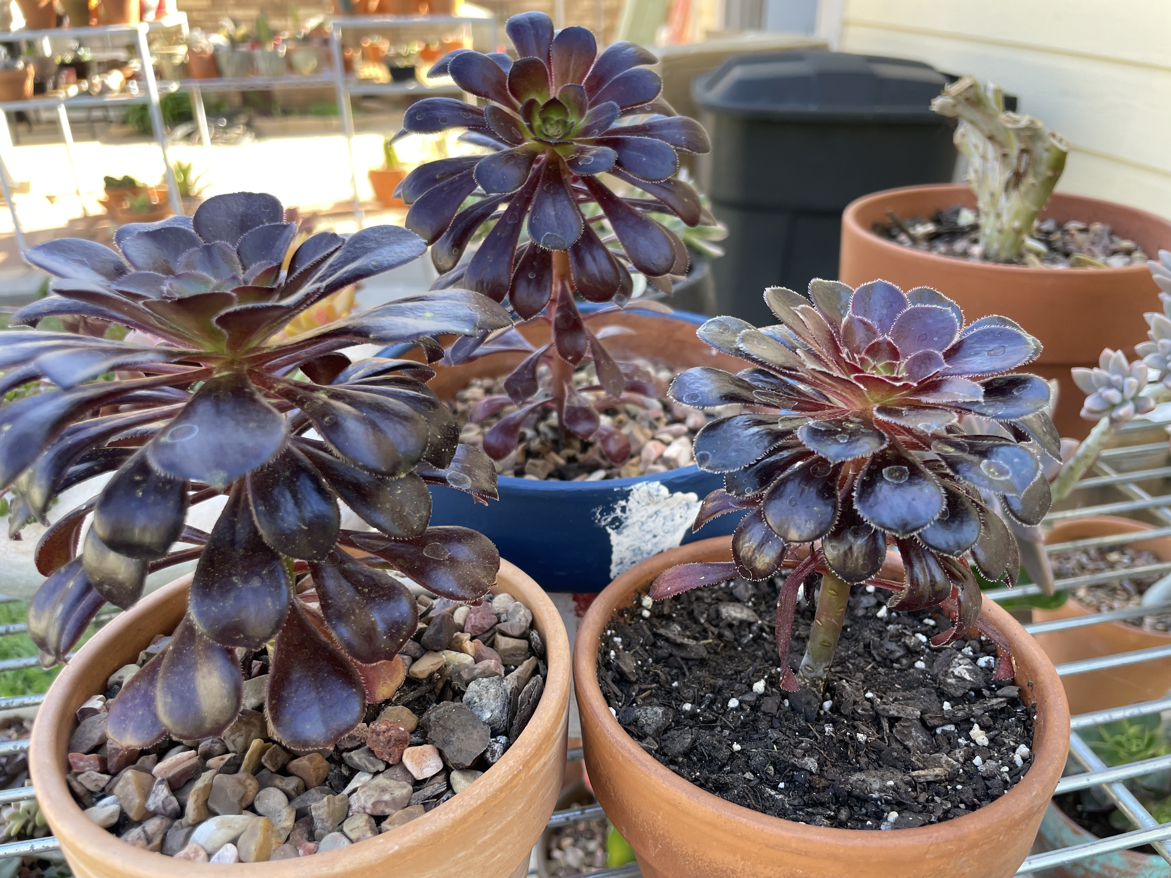 mardi gras и еще две крокозябры (вчерашний улов)- в совсем маленьких (2 инча) горшочках. Но при правильной посадке и уходе эониумы довольно быстро растут.
