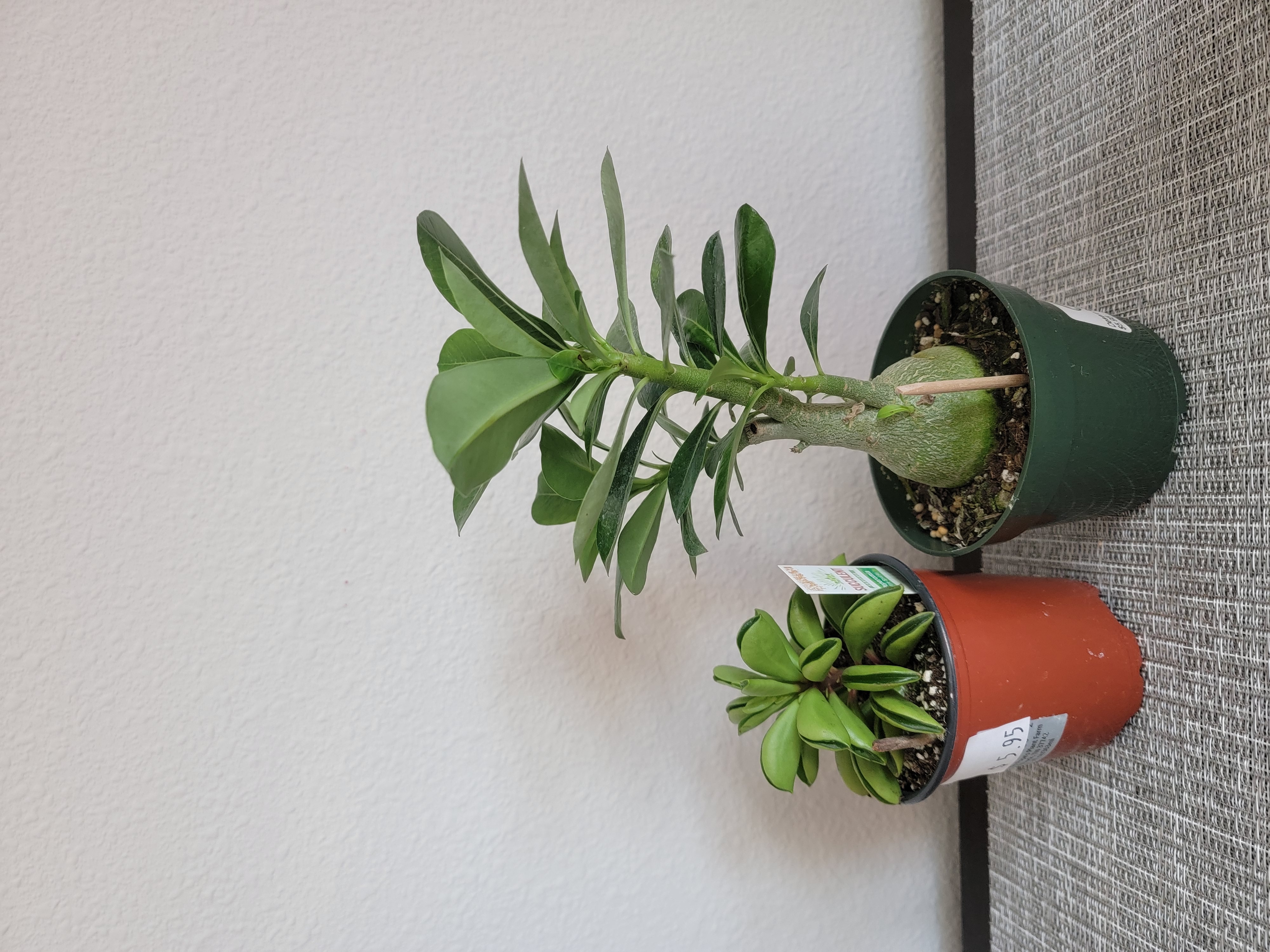 Я на прошедшей неделе ездила в нерсери за медом... меда не оказалось... я пошла прогуляться между рядами... "Нагуляла": - белый адешик... понравился каудекс... уж очень хорошей формы и за пятак всего; - пеперомию... у меня их несколько... думаю садик сделать; - бааальшой эониум... уже с боковыми розетками... Хом, думаю, уже можно башку снести и пусть толстеет; - какую-то крассулу хорошим деревцем... тоже всего за пять долларей. Довольна, как слон