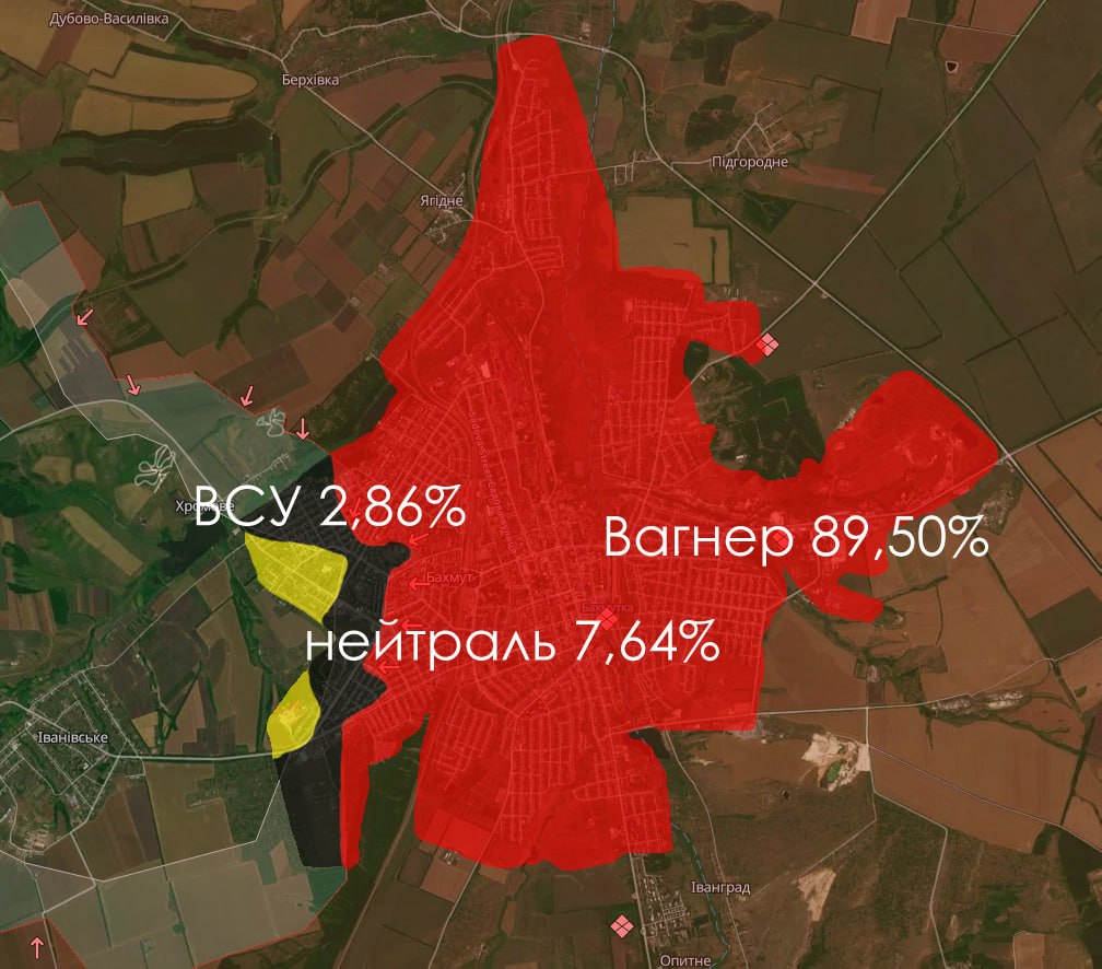 Зоны контроля в Артемовске на 5 мая 2023 года.