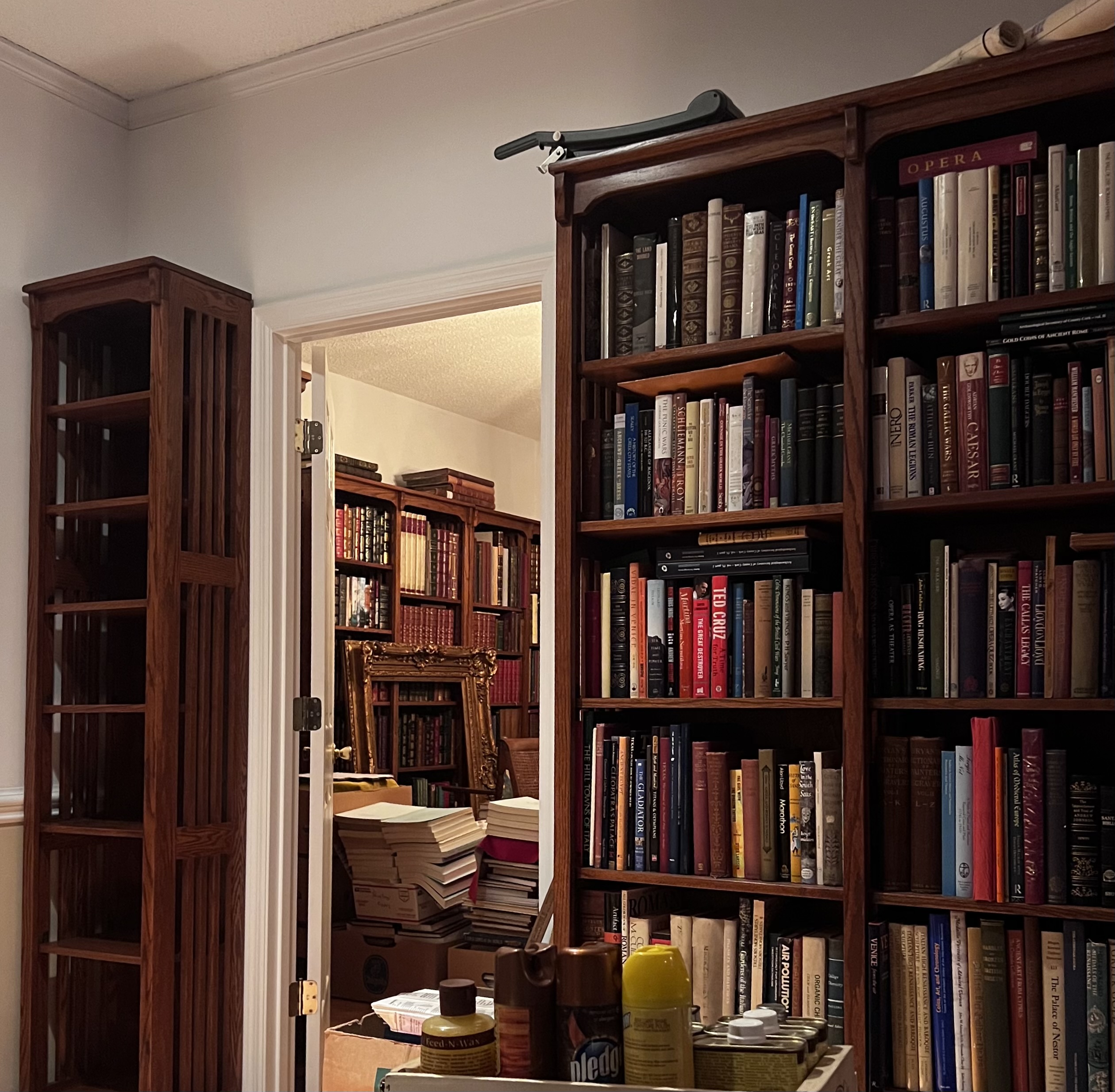 Спасибо, Наташ, шкафы и правда сделаны очень хорошо, целиком из дуба. Полки хорошие, не гнутся под тяжестью книг. Рама стоит пока, ждёт своего часа. Наверху еще одна типа такой.