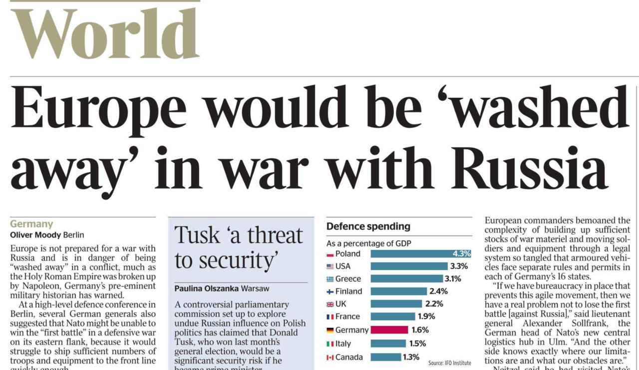 Европа не готова к войне с Россией и находится под угрозой быть «сметенной» в конфликте, подобно тому, как Священная Римская империя была уничтожена Наполеоном.