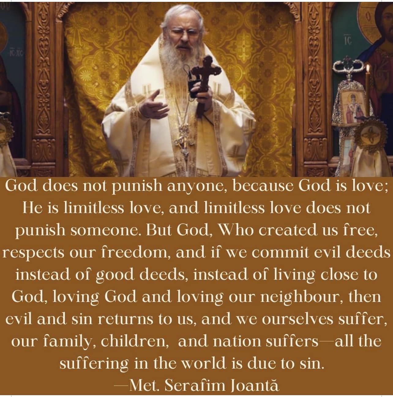 Richard Wurmbrand was a Lutheran minister in Romania who spent 14 years in Communist prison camps in the 1950's and 60's. He tells this story of an Orthodox priest and the Communist who tortured him to death: "I was in a Romanian communist prison and fell very, very ill, close to death. At my right hand was 40 year old Fr. Iscu, an abbot of a monastery. He had been so tortured he was near death, yet his face was serene. He spoke about his hope of heaven, about his love of Christ, about his faith. He radiated joy. On my left side was the Communist torturer who had tortured this priest almost to death. He had been arrested by his own comrades. It happened that the Communist torturer who had tortured this priest nearly to death had been tortured nearly to death by his comrades. And he was dying near me. His soul was in agony. During the night he would awaken me, saying, “Pastor, please pray for me. I can’t die, I have committed such terrible crimes.” Then I saw a miracle when the agonized priest called two other prisoners to help him walk past my bed, sit on the bedside of this murderer, and caress his head—I will never forget this gesture. I watched a murdered man caressing his murderer! That is love—he found a caress for him. The priest said to the man, “You are young; you did not know what you were doing. I love you with all my heart.” Then he went on, “If I who am a sinner can love you so much, imagine Christ, who is Love Incarnate, how much He loves you! And all the Christians whom you have tortured, know that they forgive you, they love you, and Christ loves you. He wishes you to be saved much more than you wish to be saved. You wonder if your sins can be forgiven. He wishes to forgive your sins more than you wish your sins to be forgiven. He desires for you to be with Him in heaven much more than you wish to be in heaven with Him. He is Love. You only need to turn to Him and repent.”