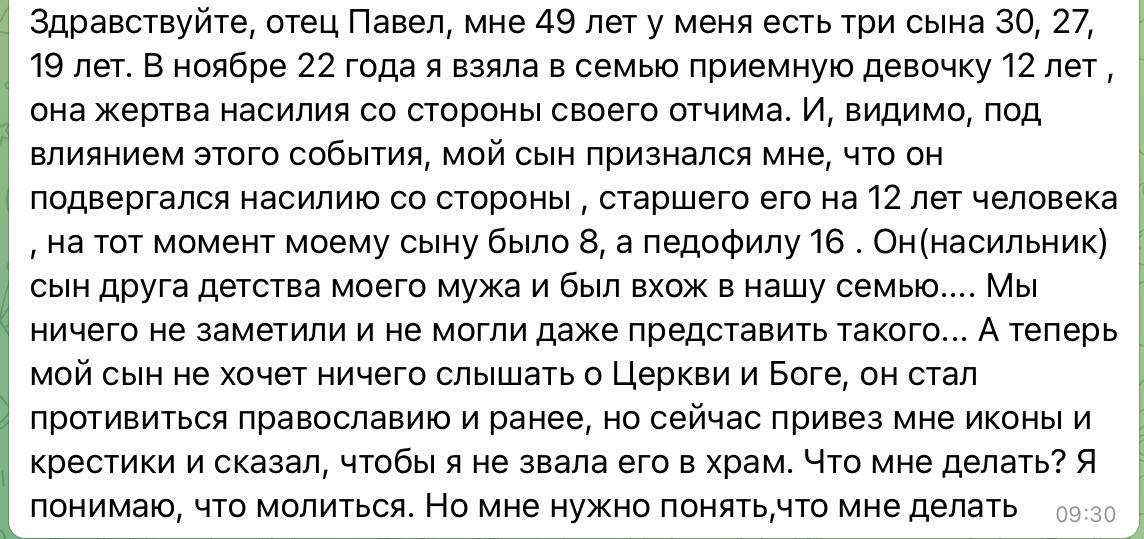 Я бы все-таки отделил проблему педофилии от подростковых религиозных сомнений, потому что последние бывают почти у всех подростков, независимо от того сталкивались ли они с насилием или нет.