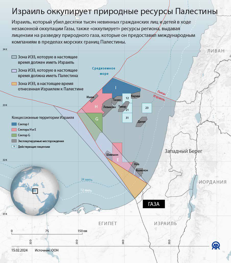 Природные ресурсы Палестины фактически захваченные Израилем.