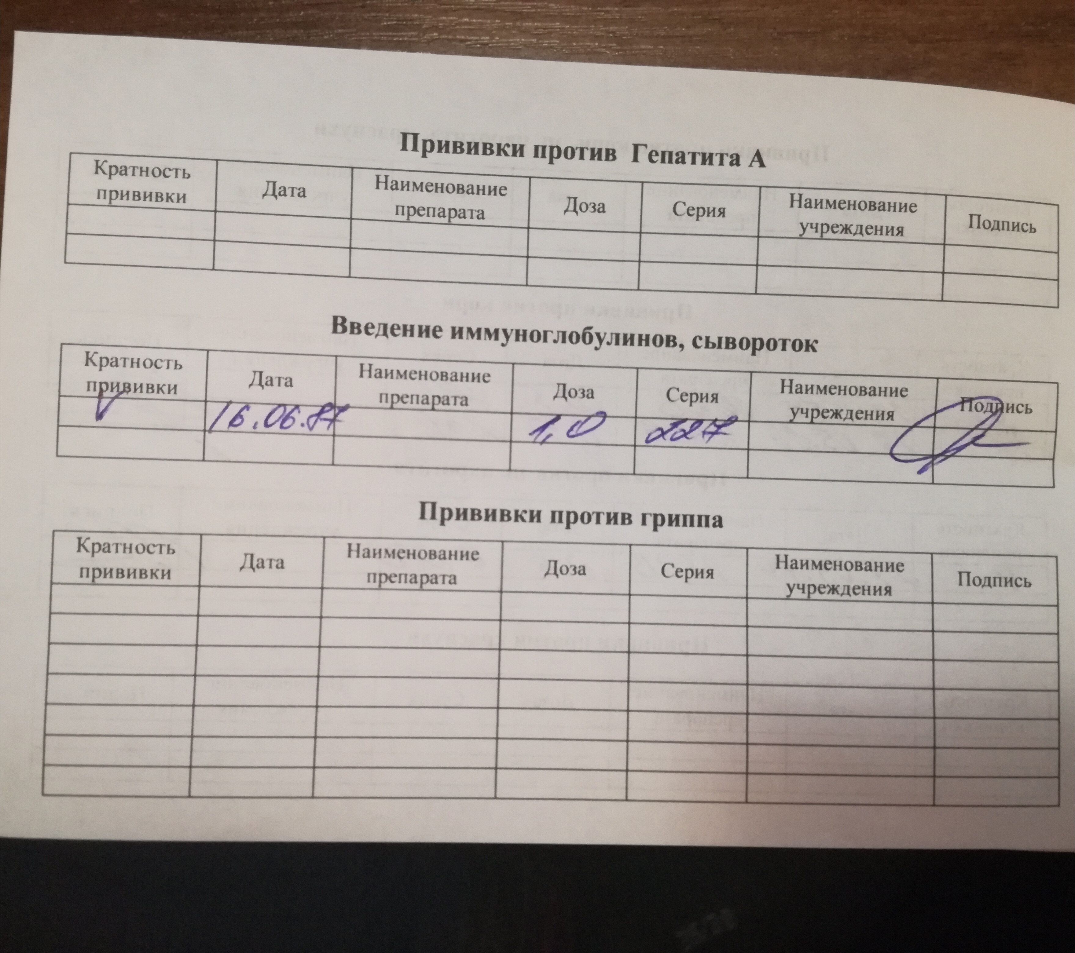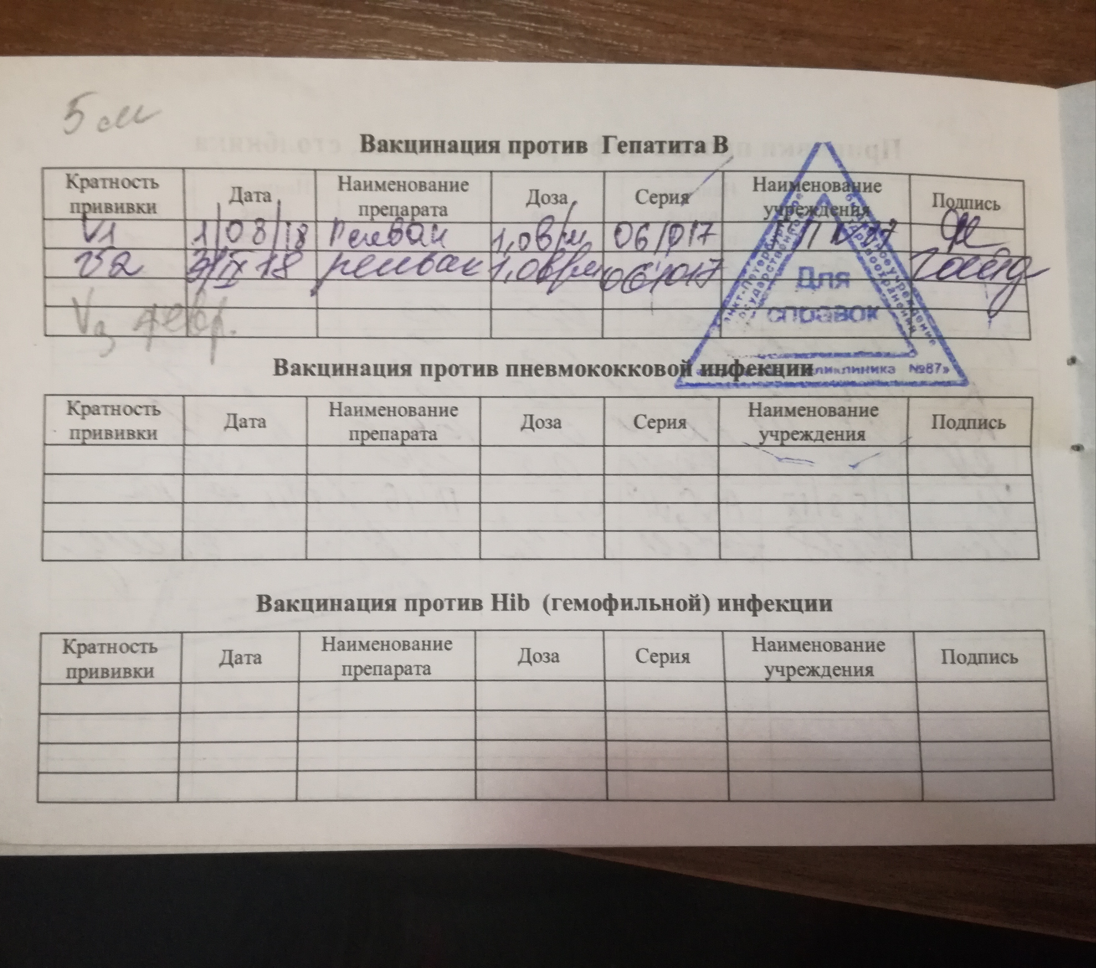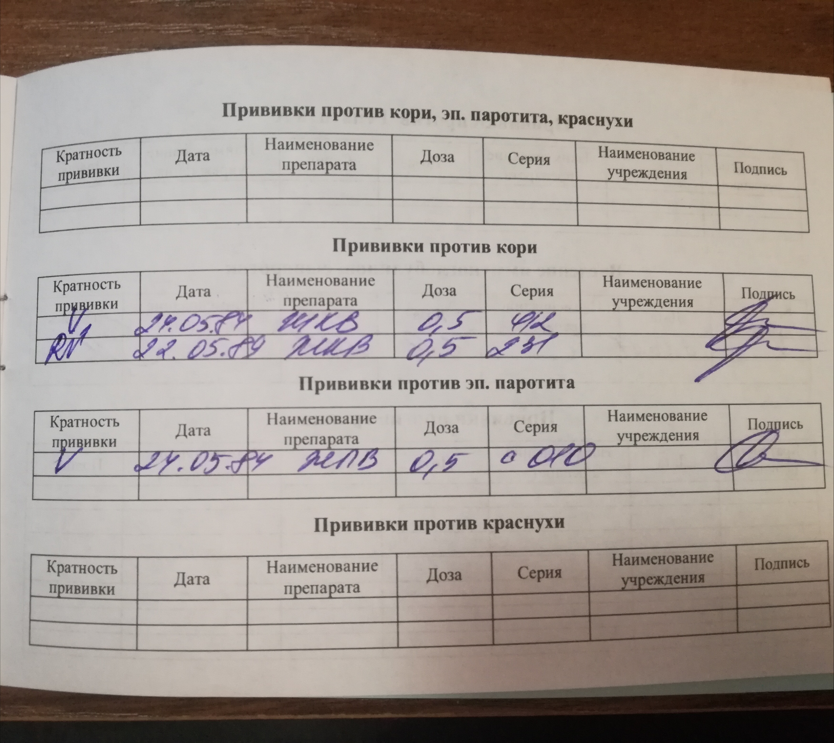 Заранее большое спасибо за ответ! гепатит В - должны быть все три записи. Краснуху и паротит - вторую вакцинацию. грипп. Благодарю Вас!