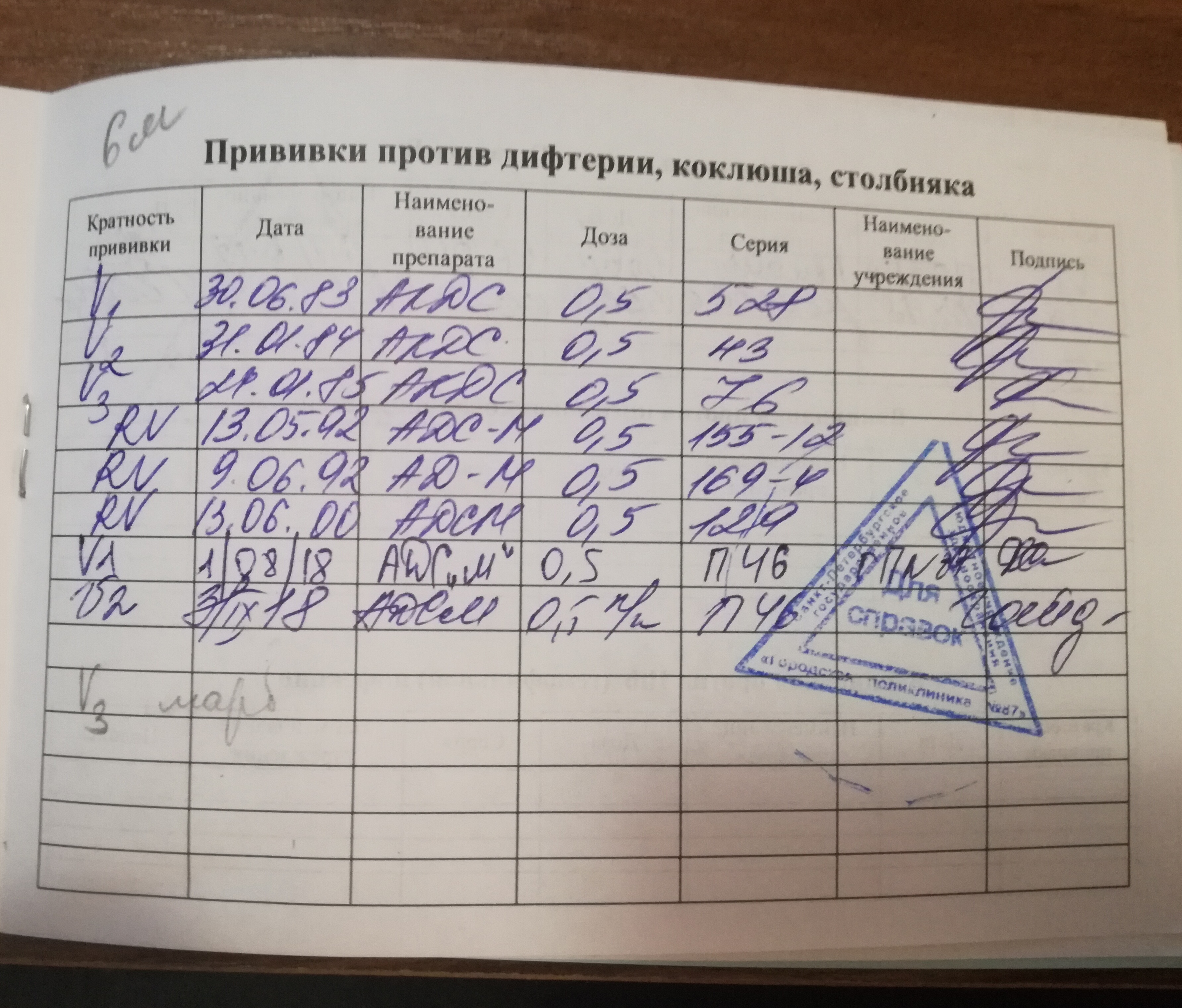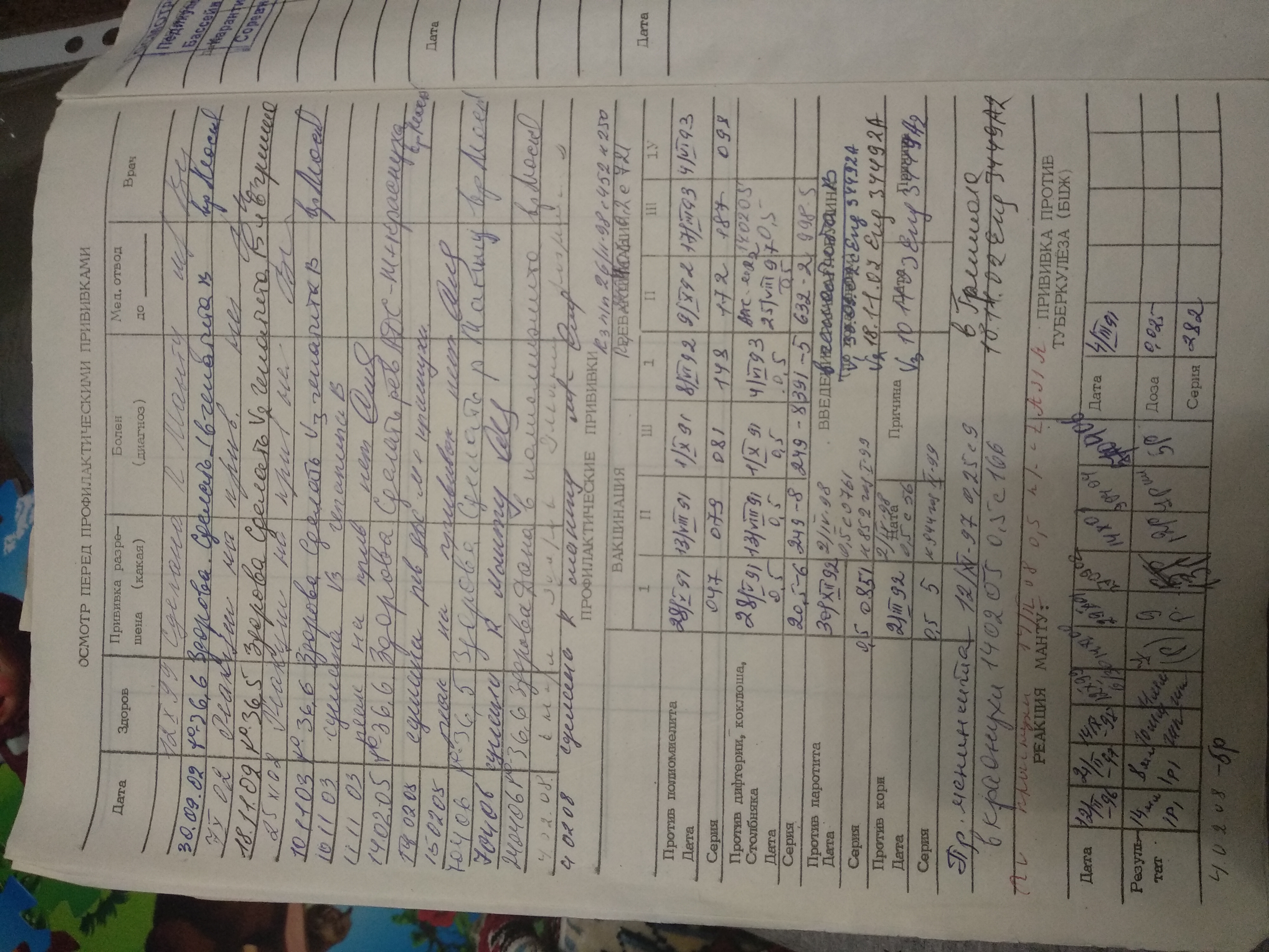 не получается загрузить фото, поэтому напишу прививки: ПРИВИВКИ ПРОТИВ ДИФТЕРИИ, КОКЛЮША И СТОЛБНЯКА: 6 штук, последняя 29.01.2009