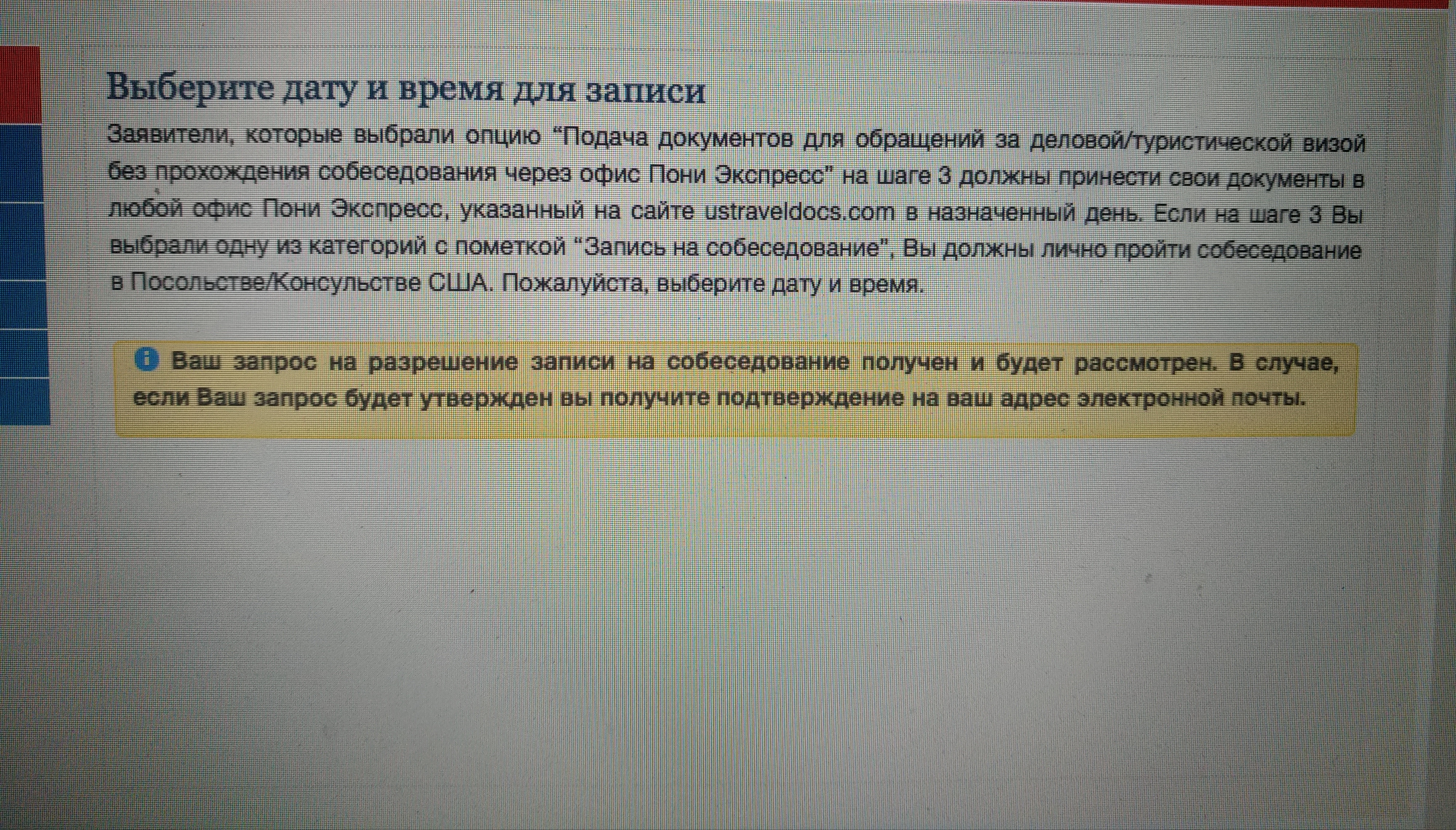 Девочки, привет! Пыталась сейчас записаться на собеседование, консульский сбор оплатила ранее сегодня со своей кредитной карты. А мне вместо доступных дат вот что система выдала: