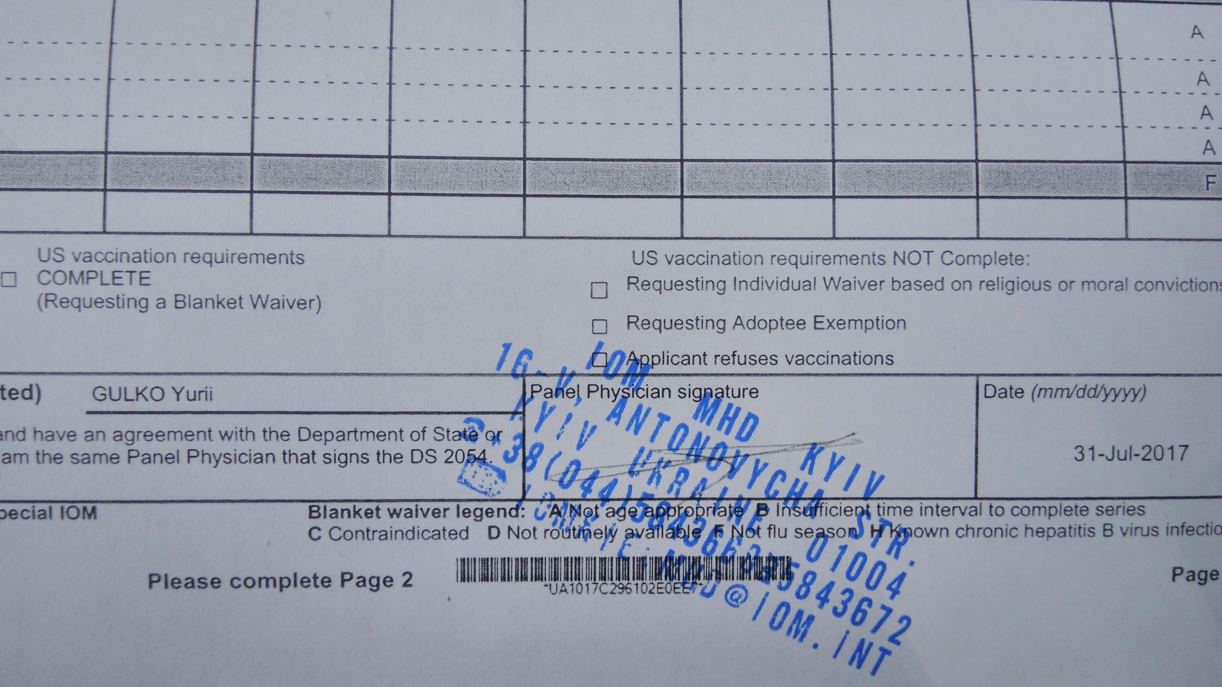 П. С. После того как написала этот пост, решила позвонить в МОМ и уточнить. Они попытались позвонить врачу, который заполнял мои прививки, но не смогли с ним связаться. Просили позвонить завтра. Я подозреваю, что мне ничего доставлять не нужно, так как скорей всего он бы сразу сказал во время медкомиссии. Но, если кому-то интересно, то я завтра отпишусь о том,что сказал врач. Стоять галочка должна в us vaccination requirements complete, у тебя её нет, значит какой то (каких то) прививок нет или они забыли вообще поставить галочку. Скинь в полном размере мне в личку, скажу чего не хватает.