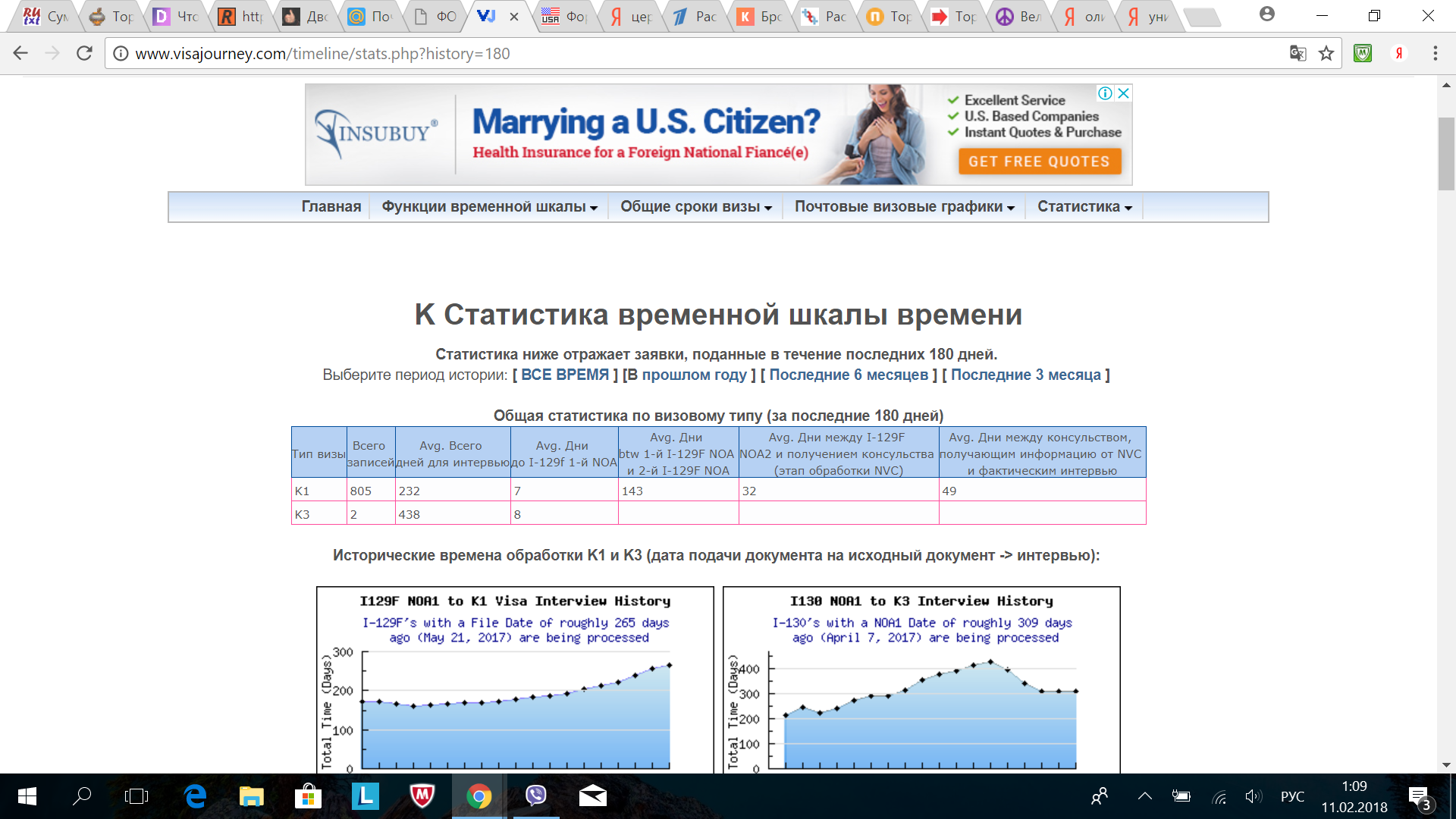 Podruzhechka писал(а): LenaElena писал(а): олена zita писал(а): Нам в юскисе намекнули, что года полтора ждать. Так что в этом году шансов нет нам визу получить. Хотя надежда не умирает). Виза жены. это запредельно - полтора года .... Вам эту "радость" когда намекнули? В январе, после новогодних праздников звонил муж. Сказали настраивайтесь на ожидание года в полтора, не меньше. На визаджорней смотрела сегодня - средний срок ожидания 500 дней. Это статистика за последние 3 месяца.  500 дней??? Это ужас какой-то((( почему так сроки увеличились, раньше невесты визы за три месяца получали([/quote] У меня визы жены - одна иммиграционная, другая не иммиграционная. По не иммиграционной (она приравнивается к невестинской К1) - срок в среднем 400 с чем-то дней. Не помню с чет, врать не буду.